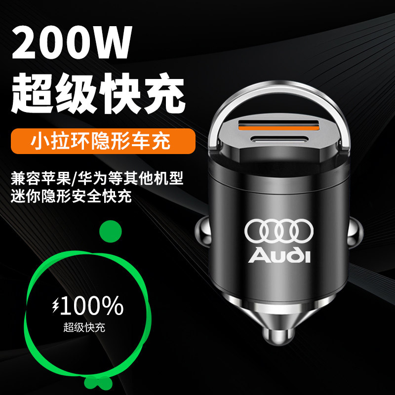 200W隐形车充车载充电器适用苹果华为超级快充汽车点烟器转换插头