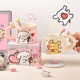 摩登主妇可爱小狗杯子家用喝水杯大容量牛奶杯女咖啡杯陶瓷马克杯