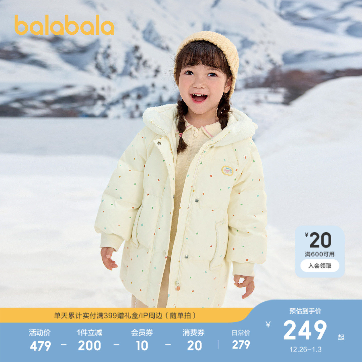 保暖户外潮 甜美可爱连帽上衣厚款 巴拉巴拉童装 儿童羽绒服女童冬装