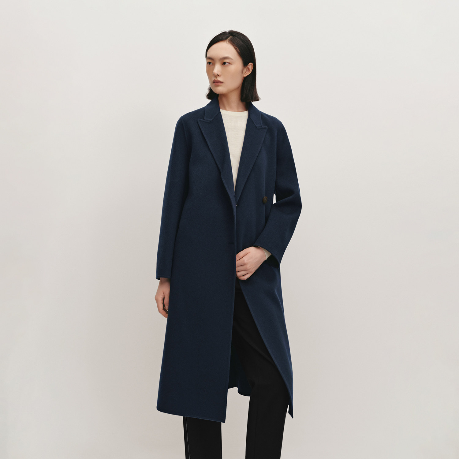 西装 过膝双面羊绒外套 领毛呢子风衣 中长款 纯羊毛双面呢大衣男士