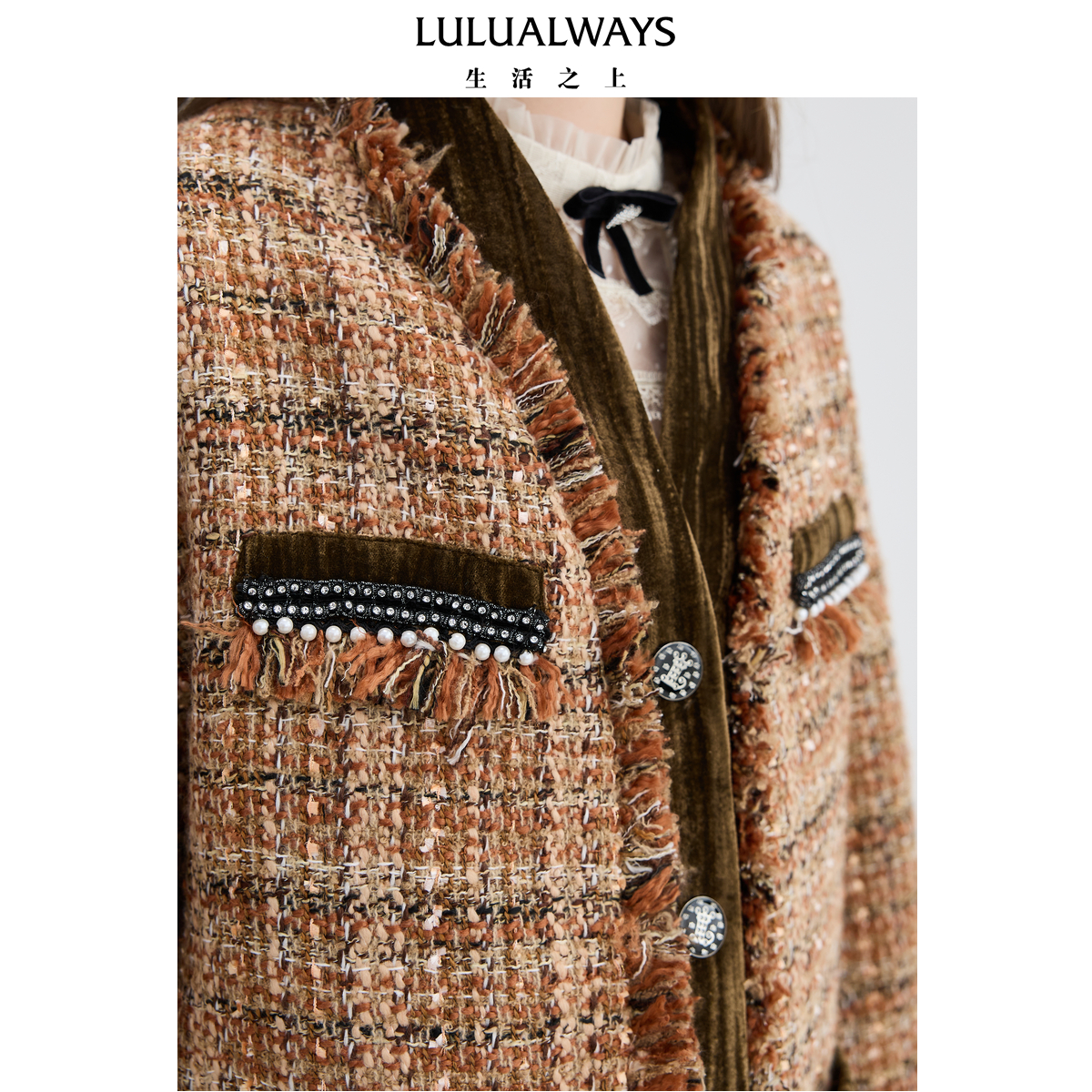 LULUALWAYS我爱露露冬季 名媛气质千金感宽松V领小香风外套 新款