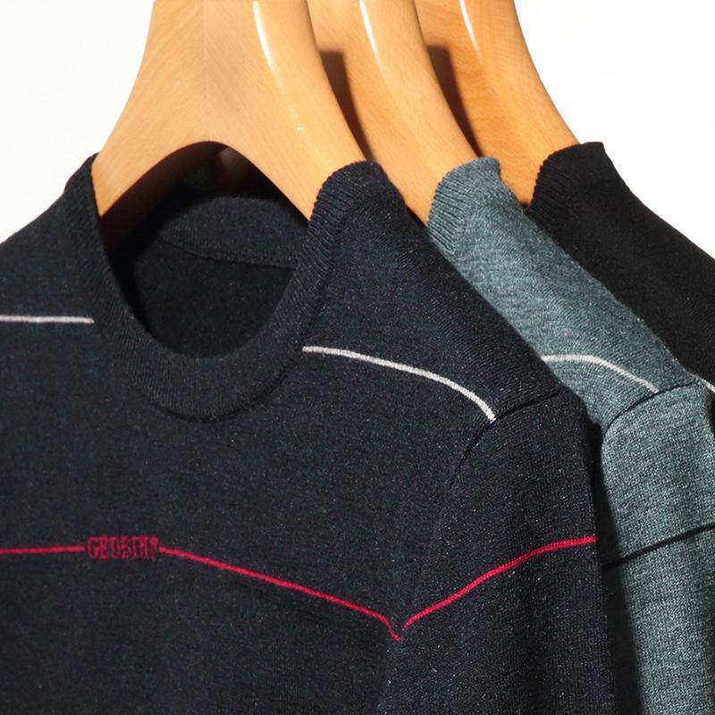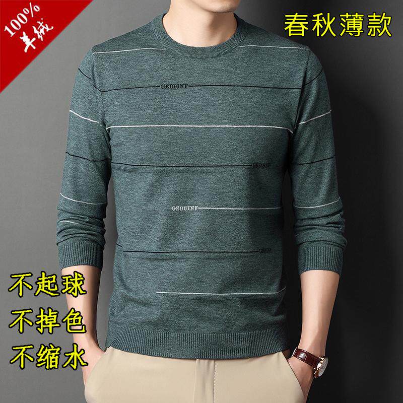 春秋针织衫 男士 圆领薄款 毛衣男长袖 新款 t恤线衣打底衫 条纹羊毛衫
