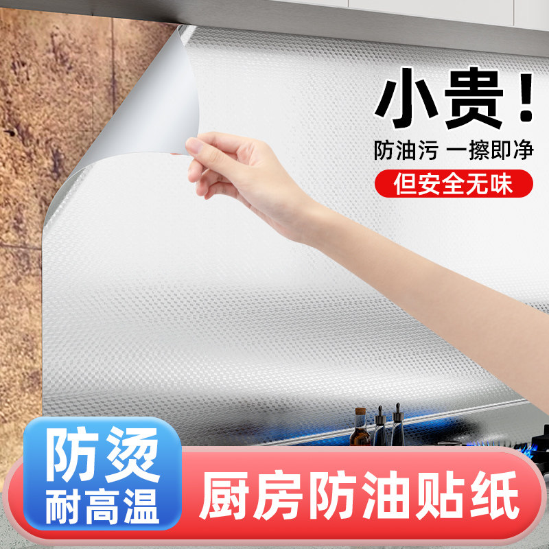 厨房防油贴纸耐高温橱柜灶台墙面贴膜防潮防水自粘加厚铝箔墙纸