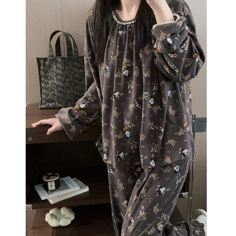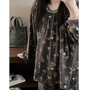 家居服套装 长袖 女高级时尚 睡衣新款 半边绒 冬装 WildRooms明星同款