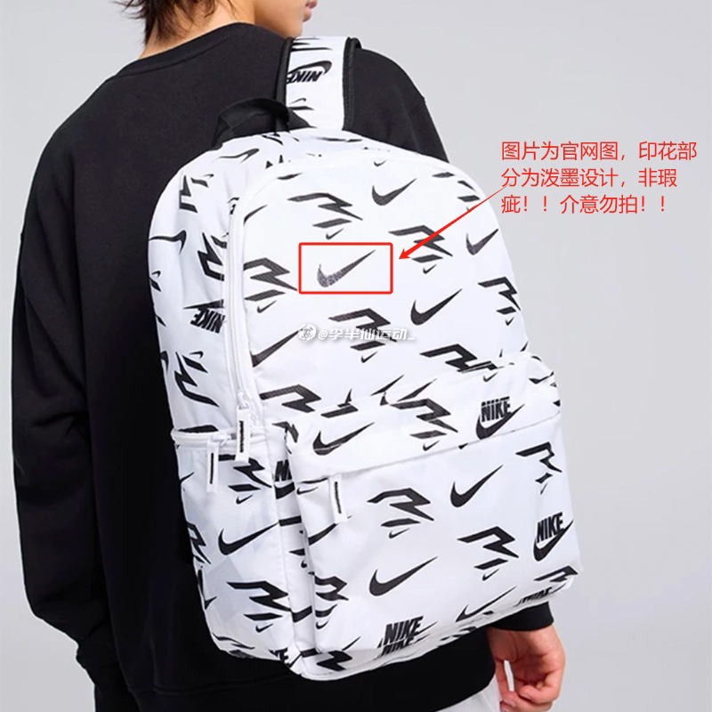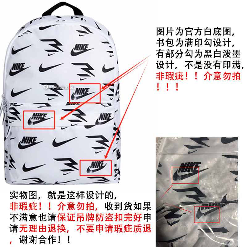 耐克Nike 002 男女运动休闲大容量黑白满印双肩包书包N32433013GS
