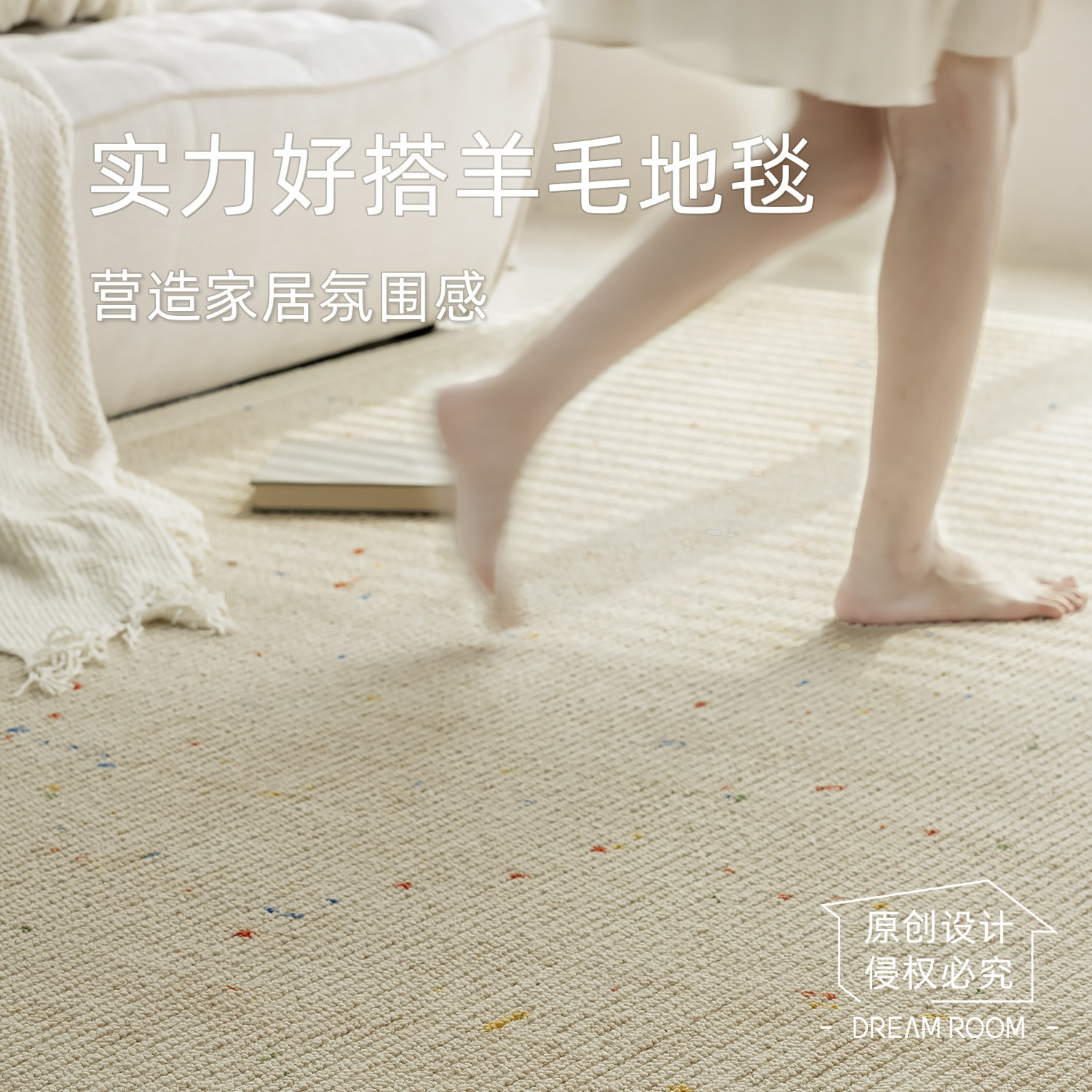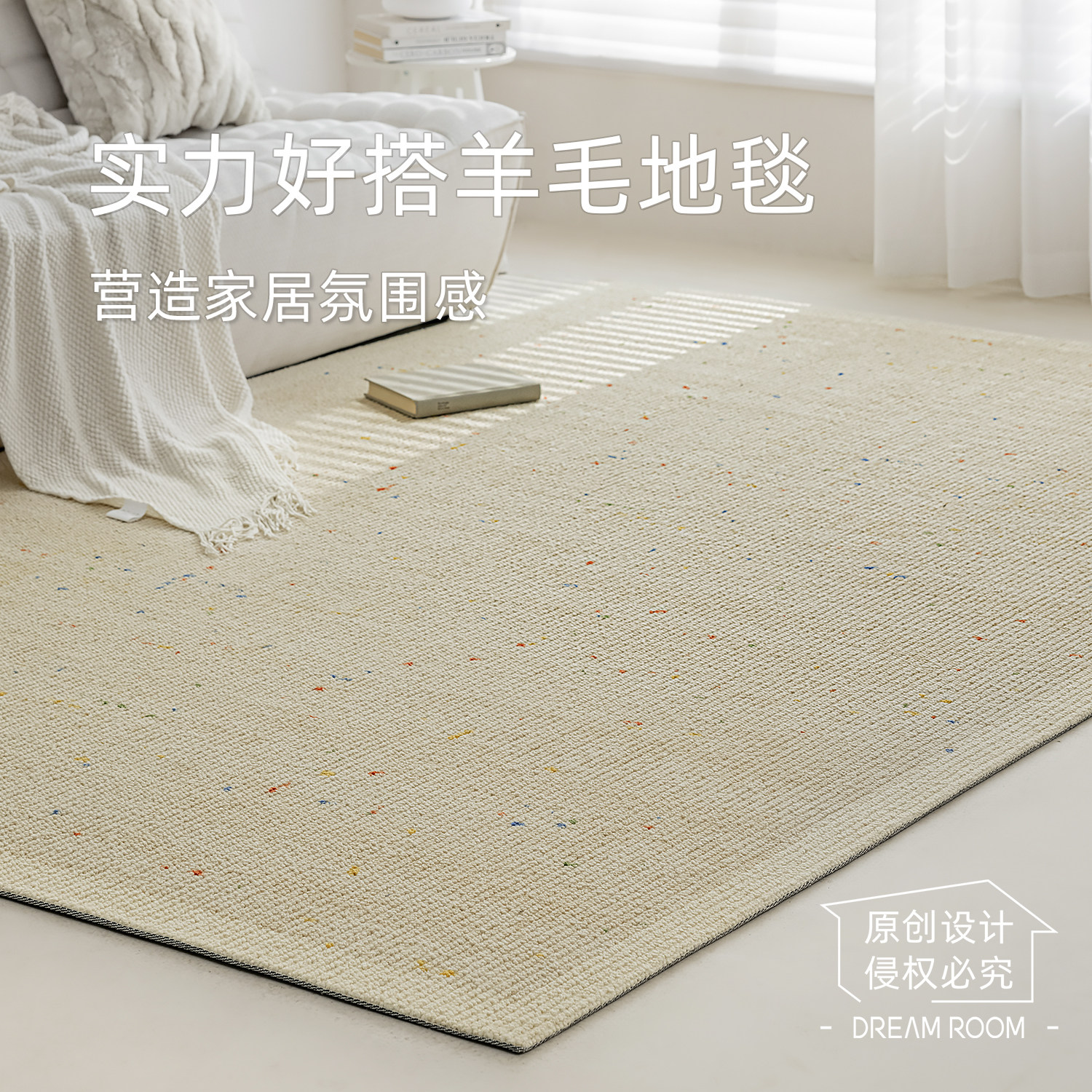 DreamRoom百搭耐脏多巴胺羊毛混纺地毯客厅奶油风卧室大客厅沙发