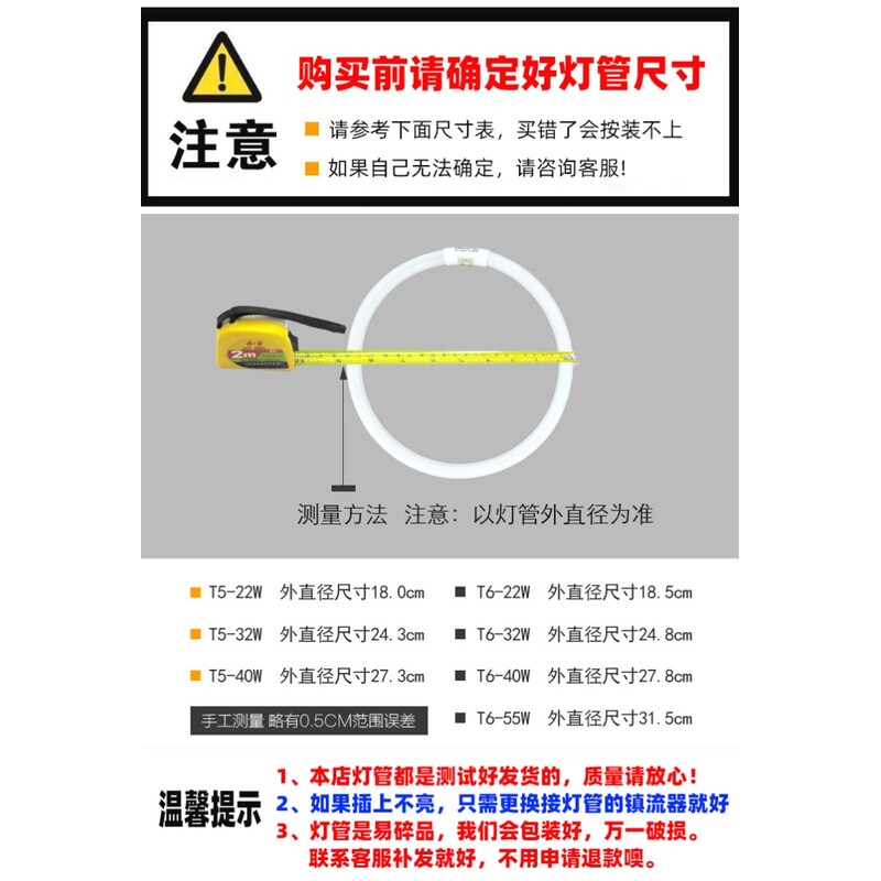 t5环形灯管22W32W40W55W三基色四针T6圆灯管 吸顶灯圆形灯管 老式