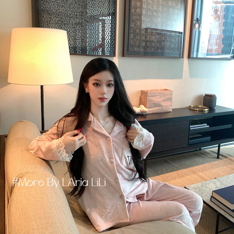 秋冬季 V经典 2025新款 睡衣女秋冬款 海岛绒加厚家居服加绒高级感 款