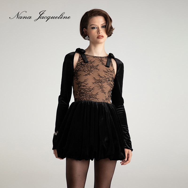 蝴蝶结蕾丝拼接蓬蓬裙 NanaJacqueline连衣裙气质插肩袖 甄选3折