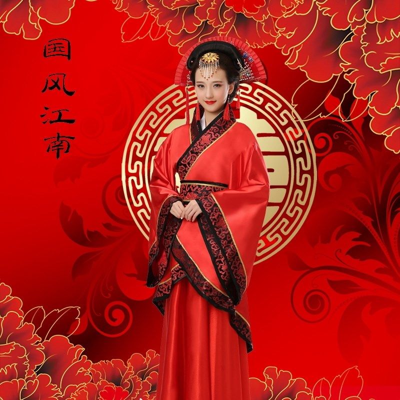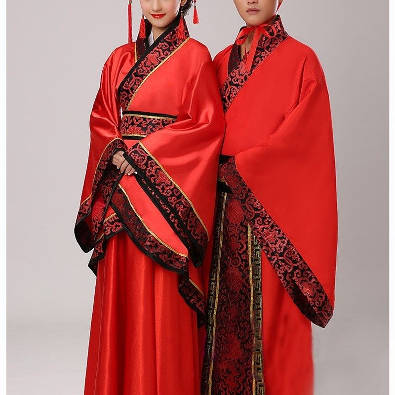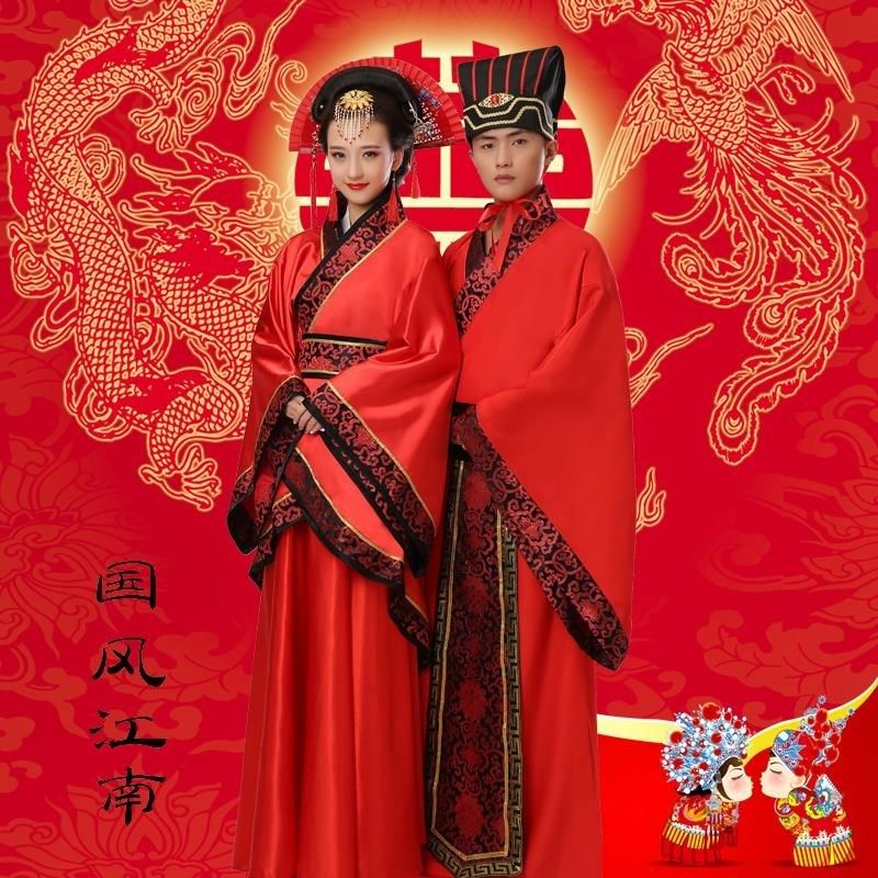 结婚唐礼婚服汉服喜朝汉朝婚服 红色新娘新郎中式 速发2020新款 古装