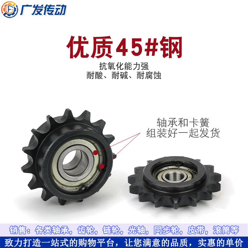 08B 两边凸涨紧轮4分20T齿单双轴承卡簧调节导向惰链轮 4分双凸台