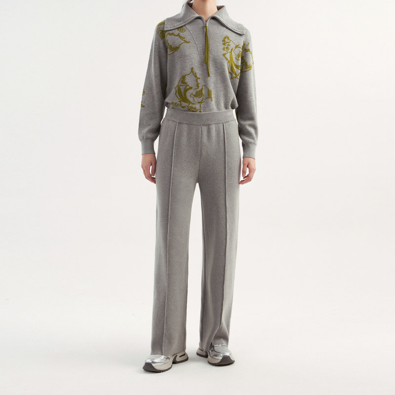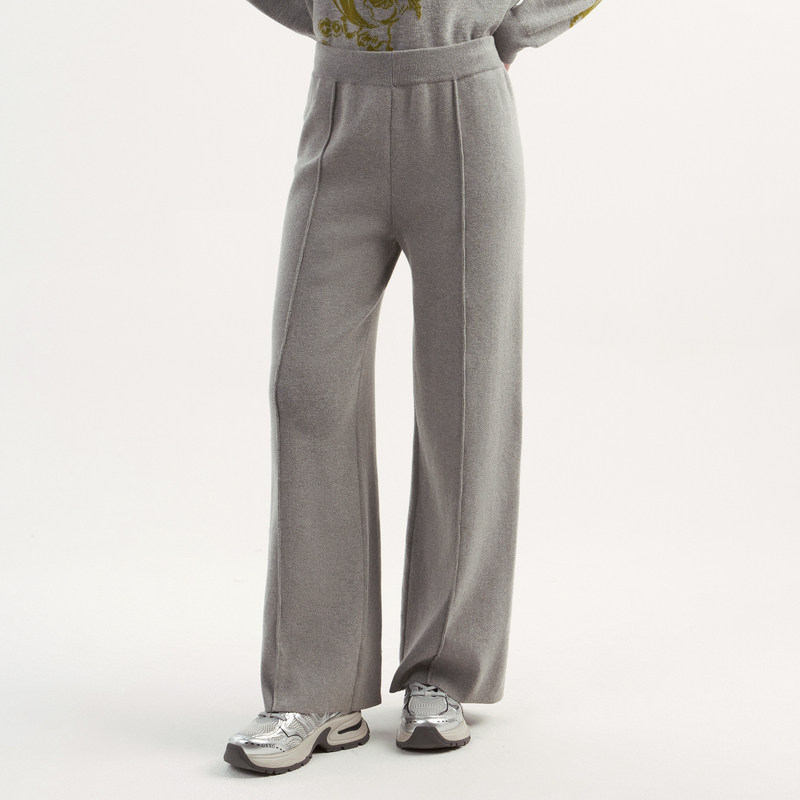 专柜同款 通勤百搭裤 Yifini 毛织裤 子女 易菲阔腿休闲保暖针织裤