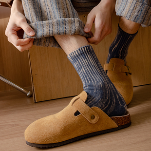 男长袜黑白色 中筒袜加厚保暖纯棉防臭运动冬款 长筒袜子男士 秋冬季