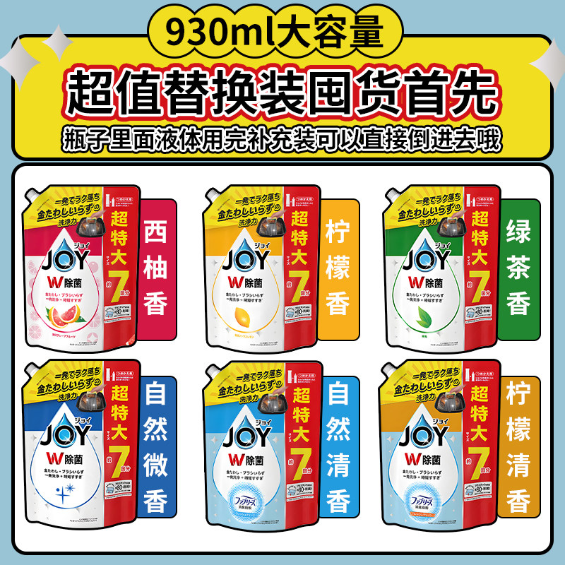 日本P&G宝洁JOY倒立洗洁精浓缩去油无残留除菌大袋果蔬餐具洗涤剂