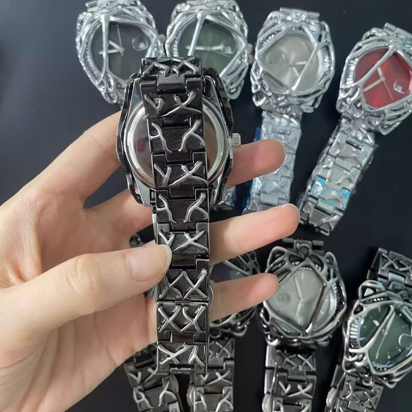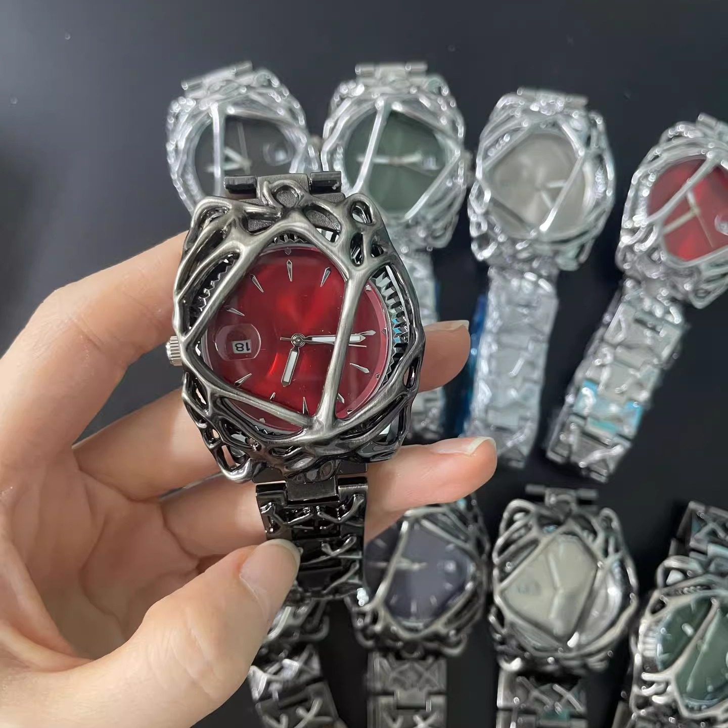 千禧年异形表alabaster中古风小众蛛网日历欧美炫酷男士 手表礼物