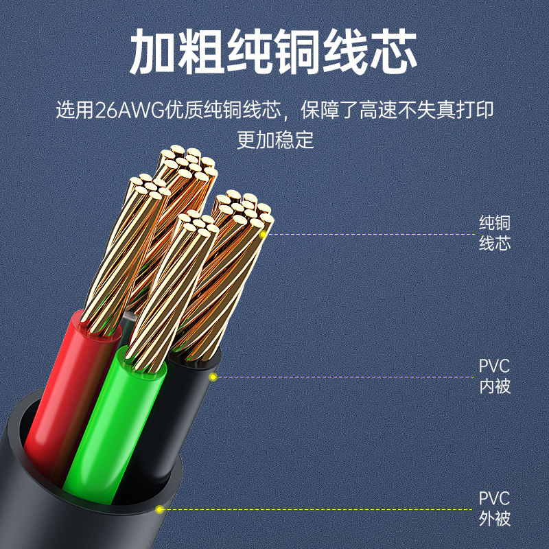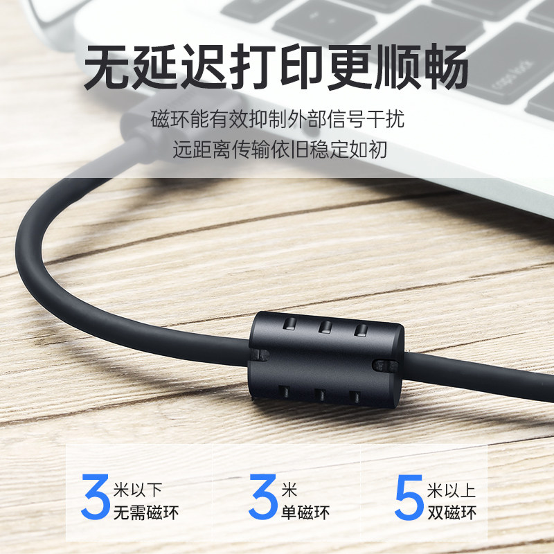 艾德生打印机数据线电脑加长连接USB2.0转方口适用佳能惠普爱普生