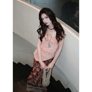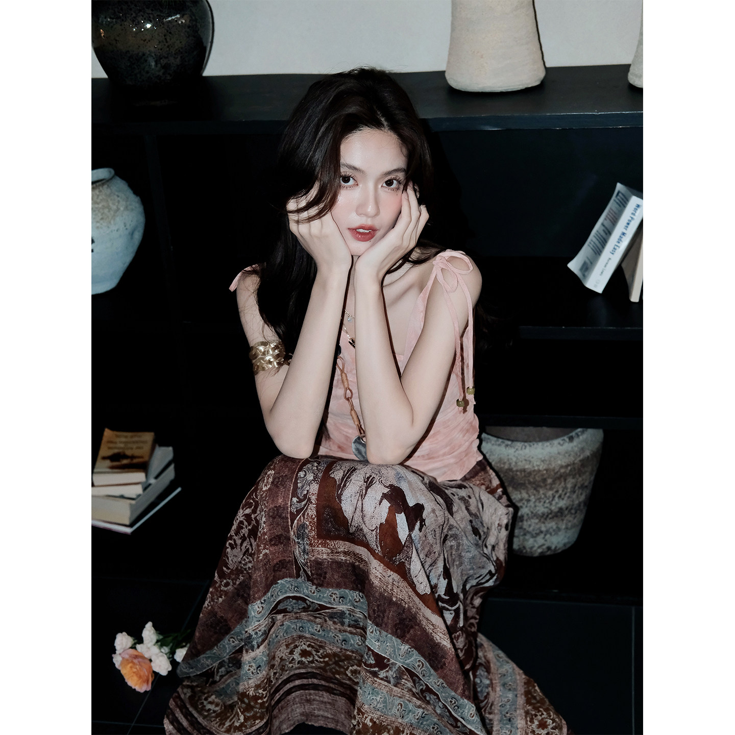 上衣印花弹力腰半裙 系带荡领压褶修身 彼得潘大叔 马德里不思议