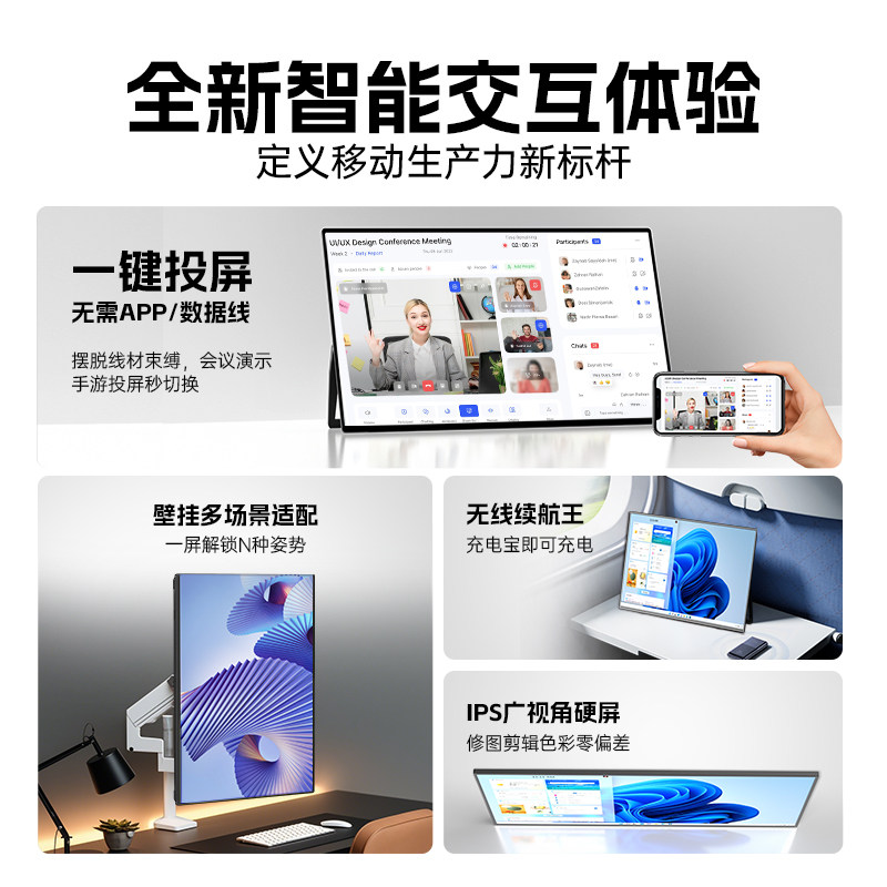EIMIO2.5K手机无线投屏便携显示器笔记本平板电脑扩展屏幕显示屏