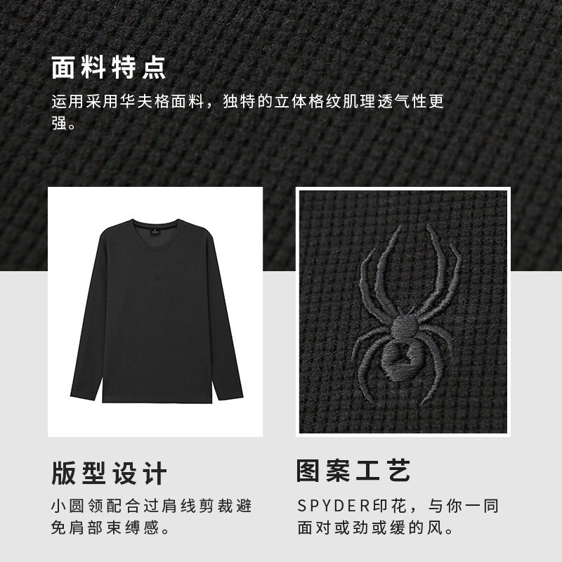 SPYDER蜘蛛秋冬男子华夫格面料透气休闲运动长袖 圆领T恤25MF403M