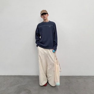 美式 arch 撞色明线长袖 上衣半拉链t恤男 咆哮野兽 roaringwild