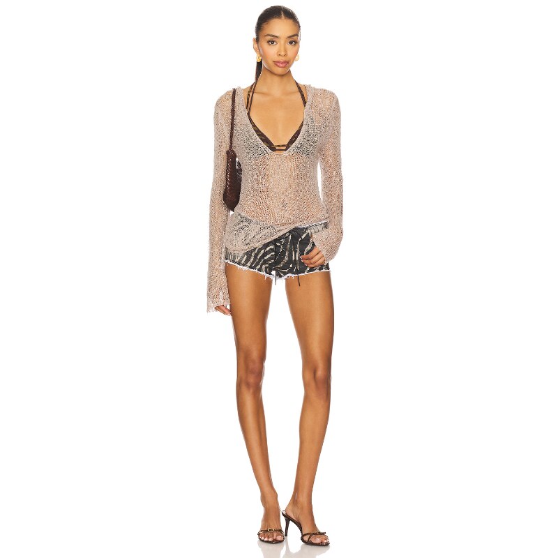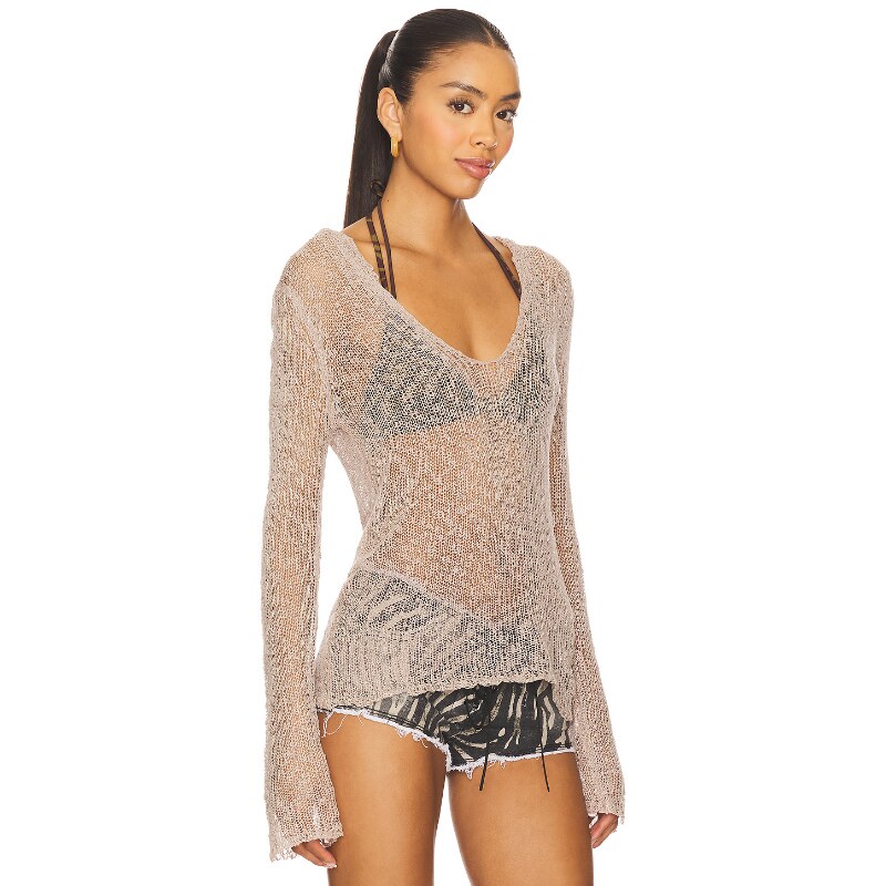 Jaded 新品 London 棕色镂空针织长袖 度假辣妹风REVOLVE 罩衫 春季