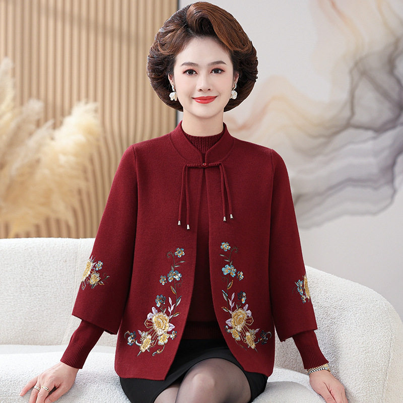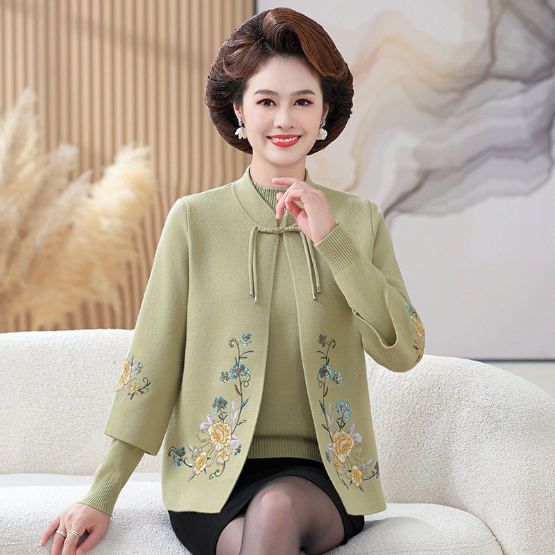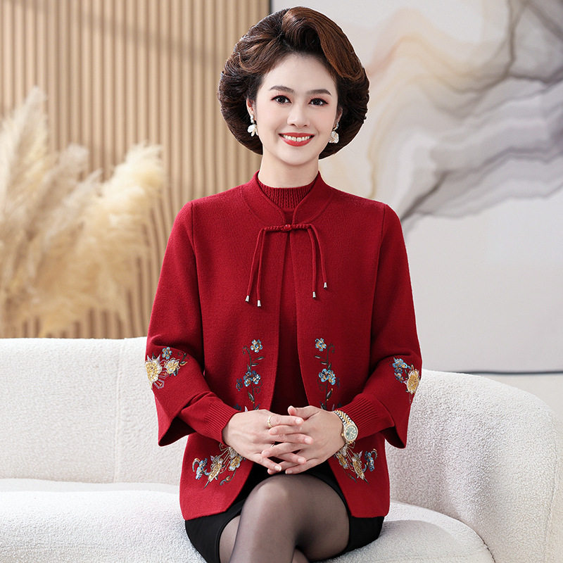 奶奶装 加厚加绒针织衫 半高领花朵仿貂毛毛衣中老年妈妈装 中年女装