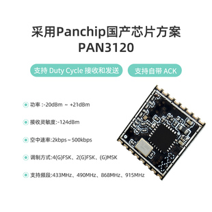 国产PAN3120低功耗433M模块小尺寸FSK调制模块双向无线传输模块