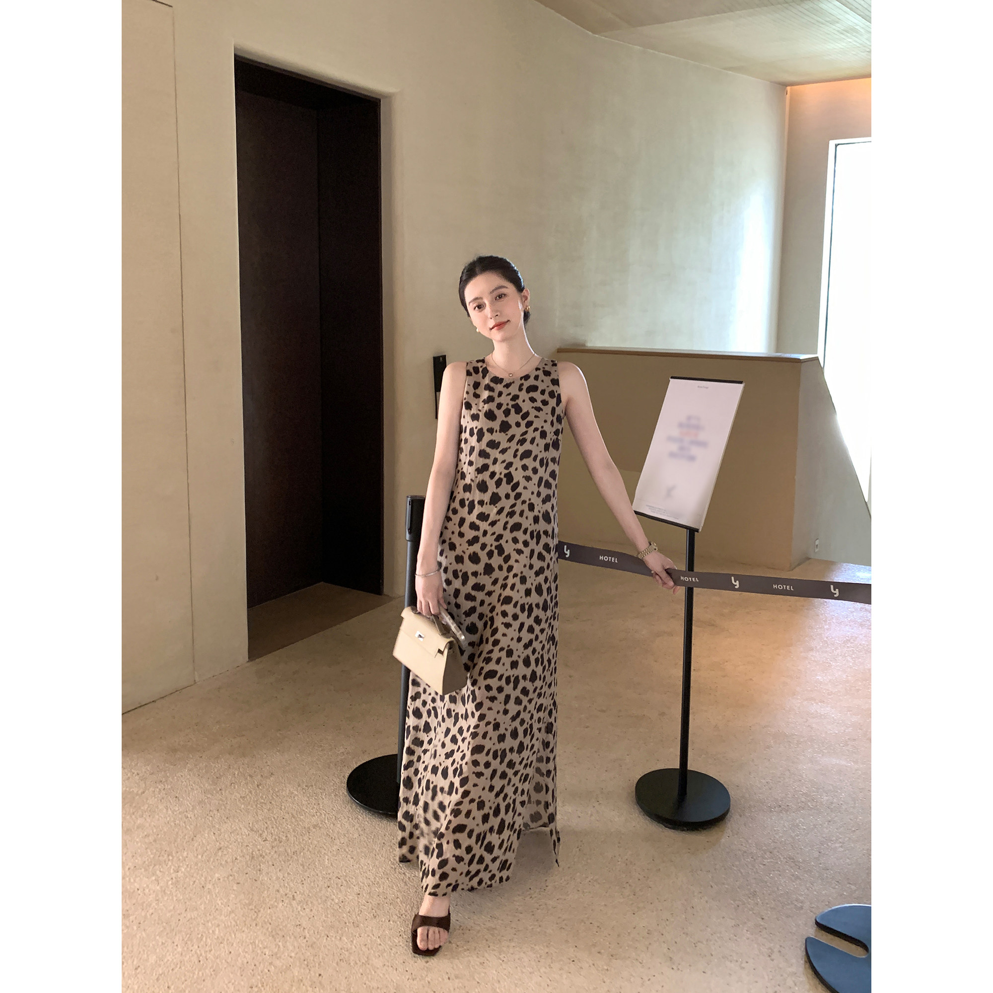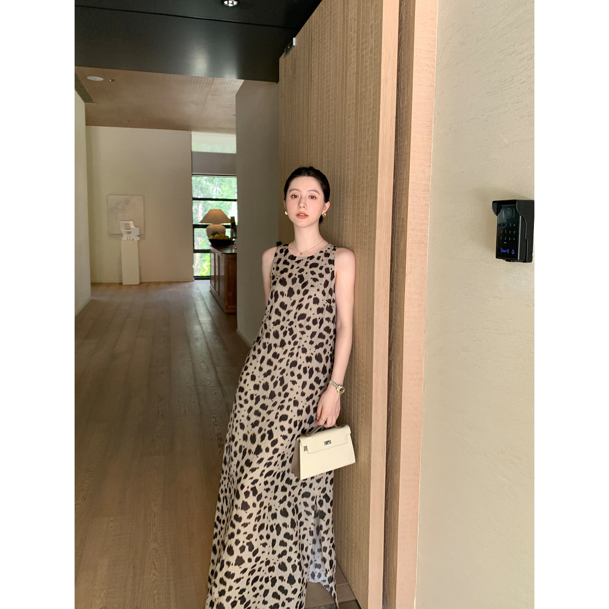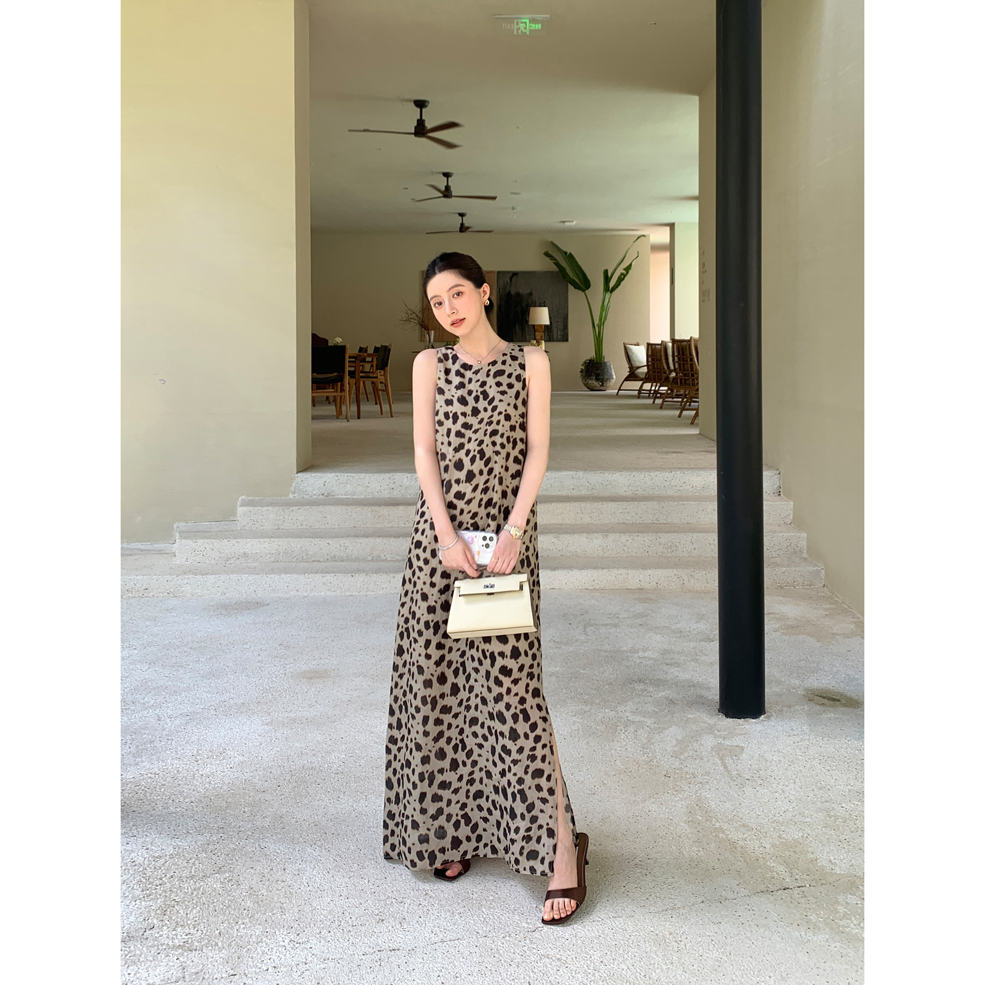 1OO苎麻系列 现货7折 优雅豹纹连衣裙女背心长裙 Lin Maven