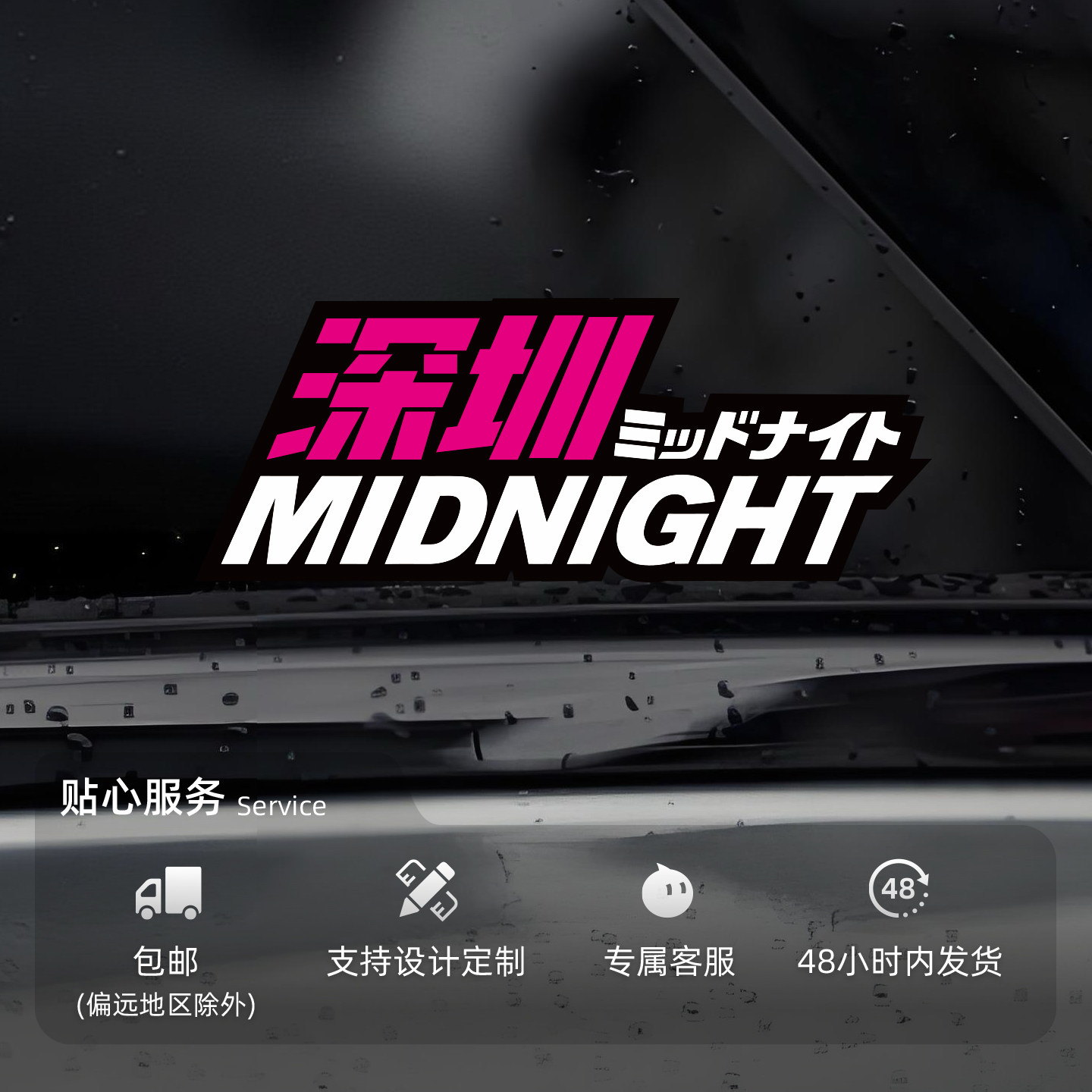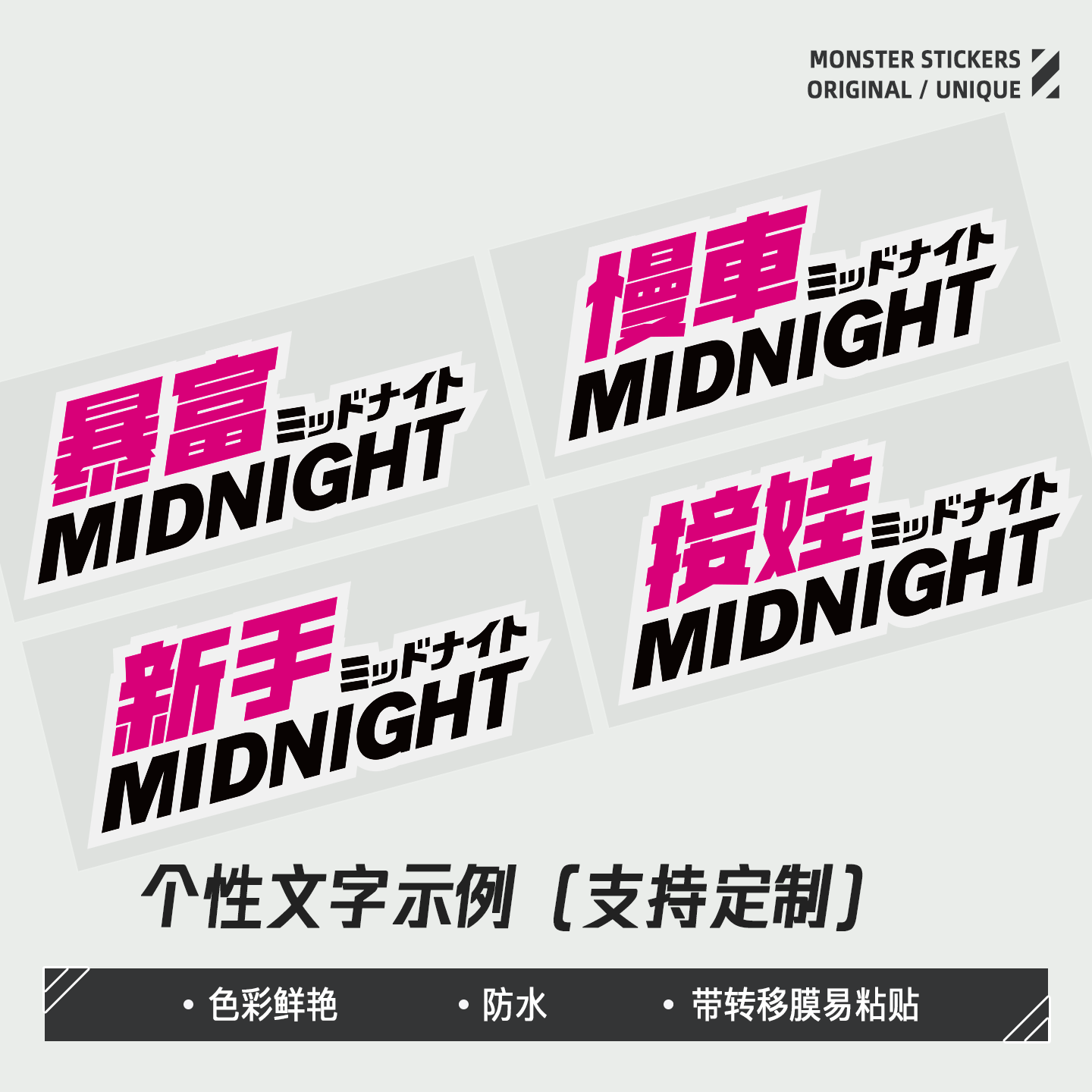 文字定制反光贴 Midnight湾岸个性 怪兽车贴 JDM城市午夜汽车贴纸