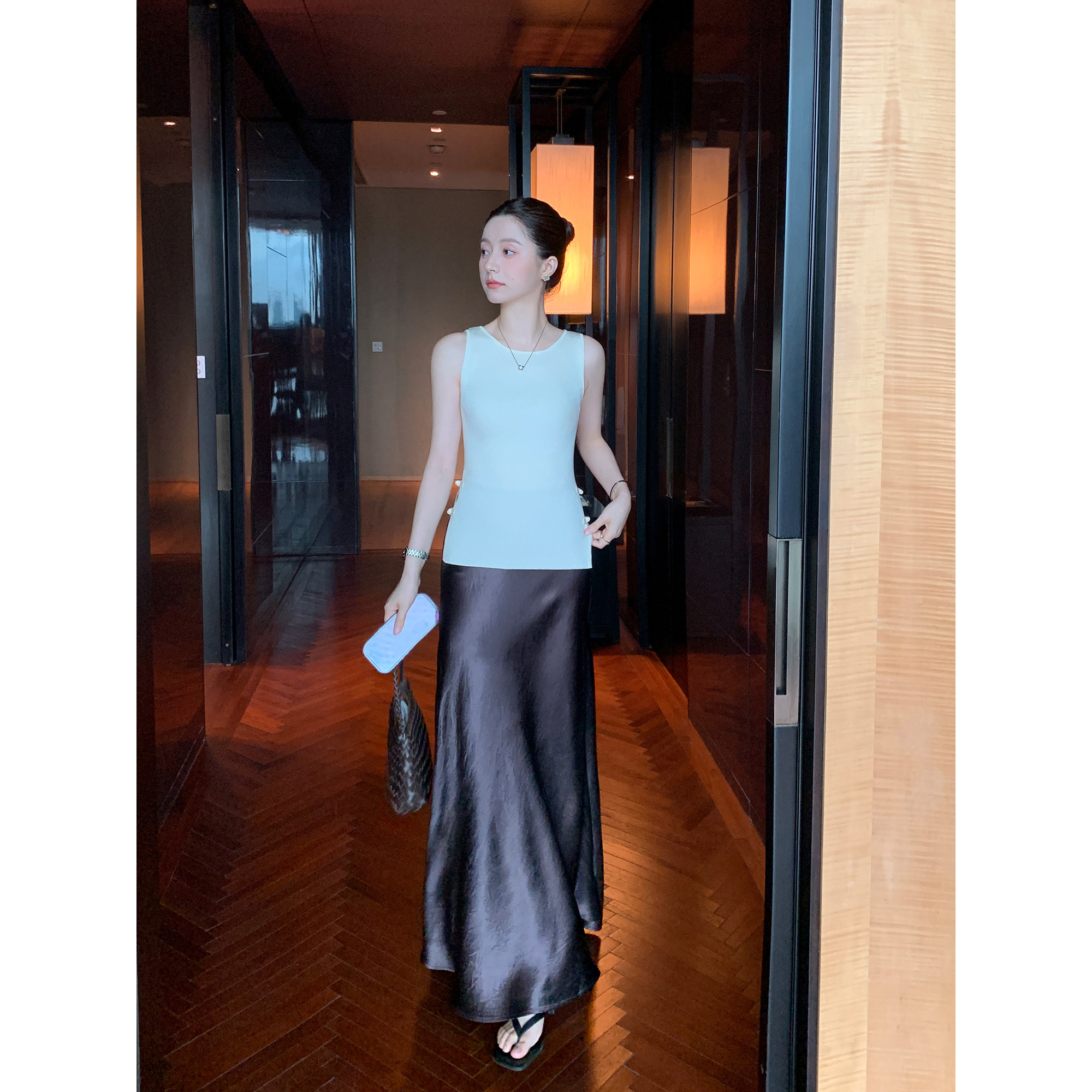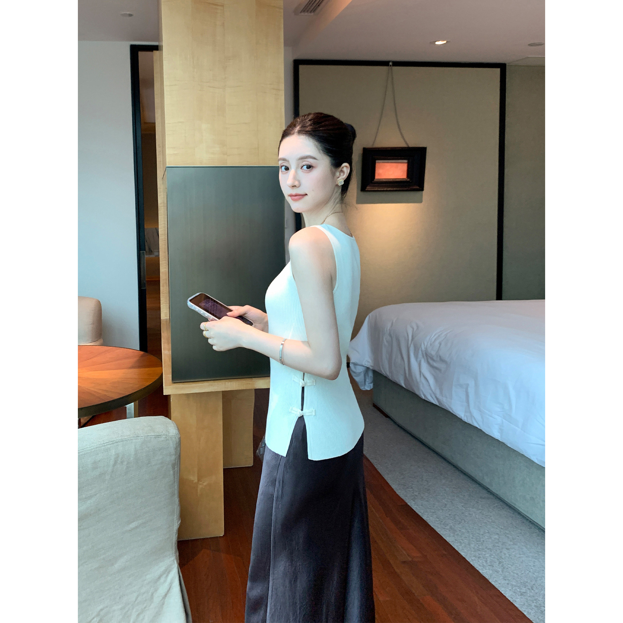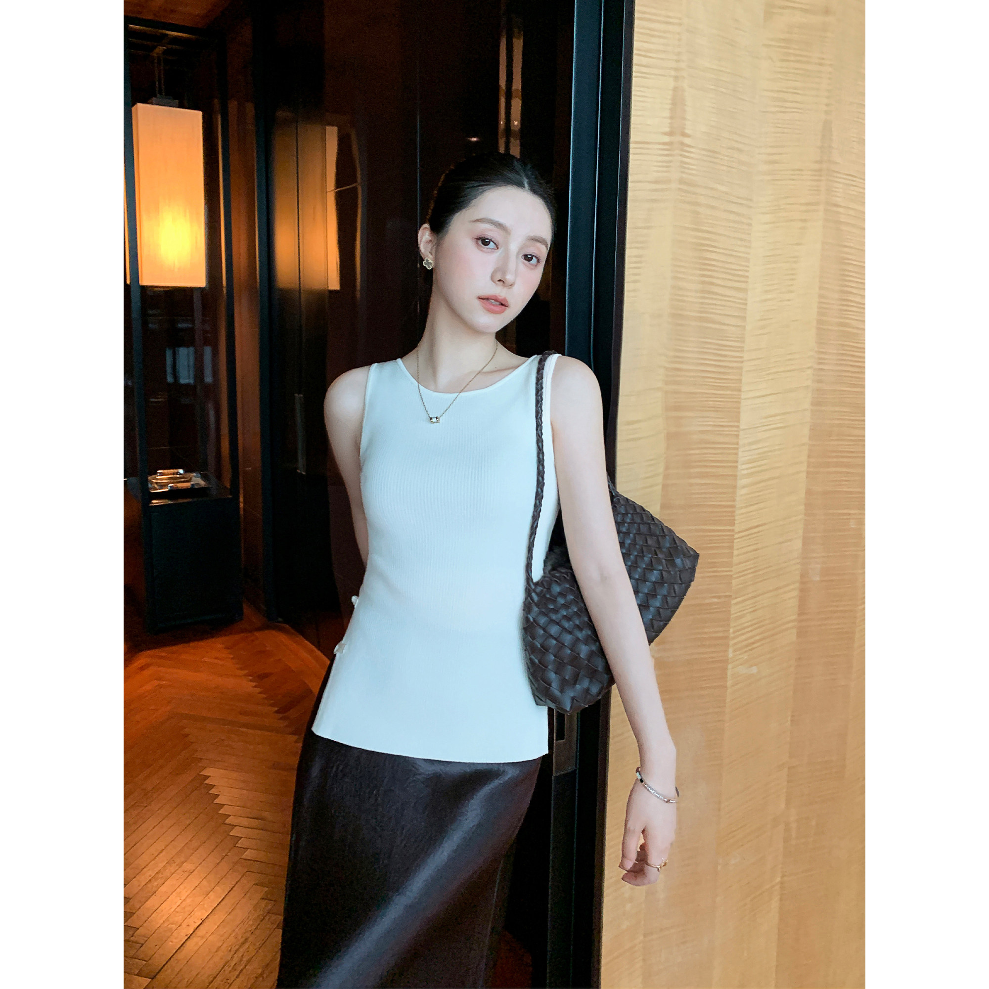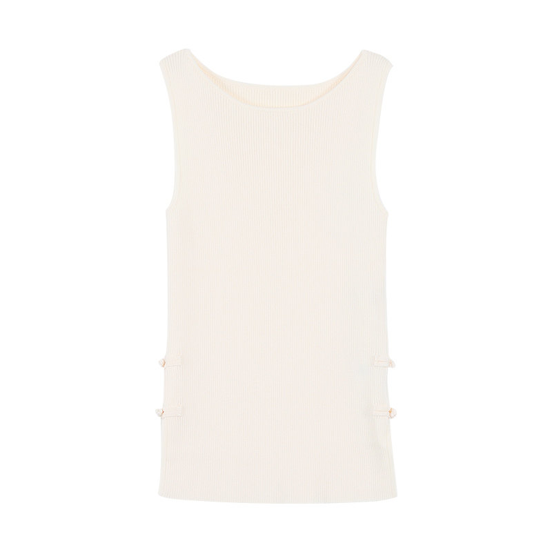 无袖 Maven 风修身 手工编织盘扣背心吊带女中式 上衣 Lin醋酸莱赛尔
