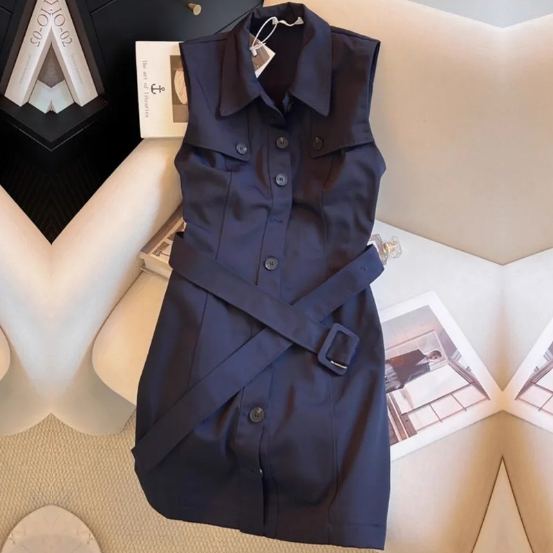 气质简约百搭无袖 法式 新款 POLO领连衣裙女夏季 背心裙子 高级感时尚