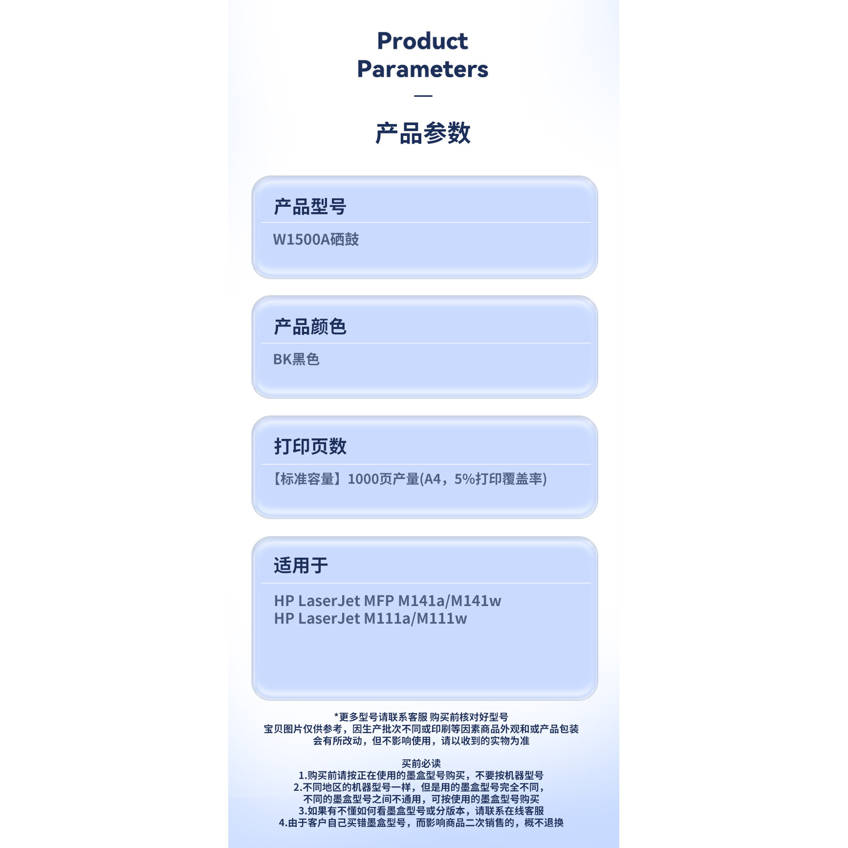 MFP 雄彩适用惠普M141w硒鼓M111w LaserJet W1500A墨盒HP M141a多功能复印一体机粉盒M111a打印机晒鼓 hp150A