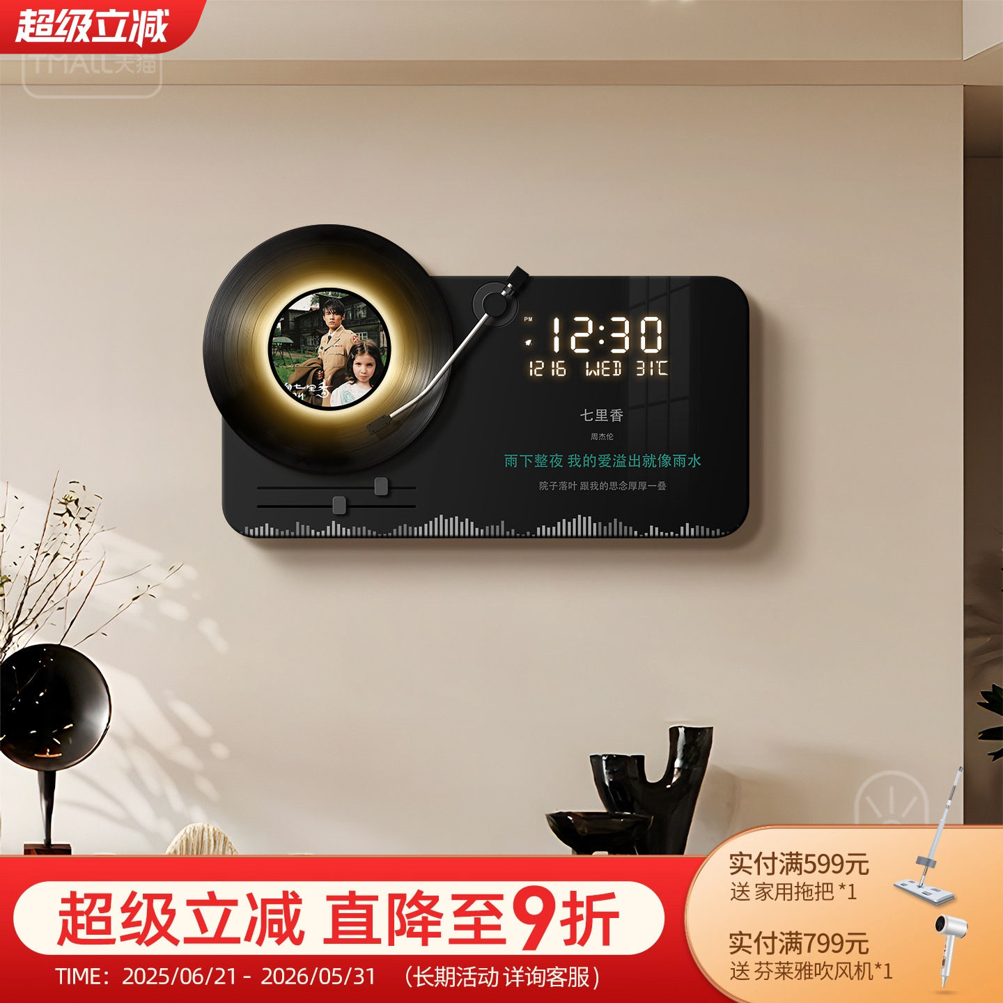 黑胶唱片电子钟表2025新款 饰画发光创意客厅复古高级感时钟 挂钟装