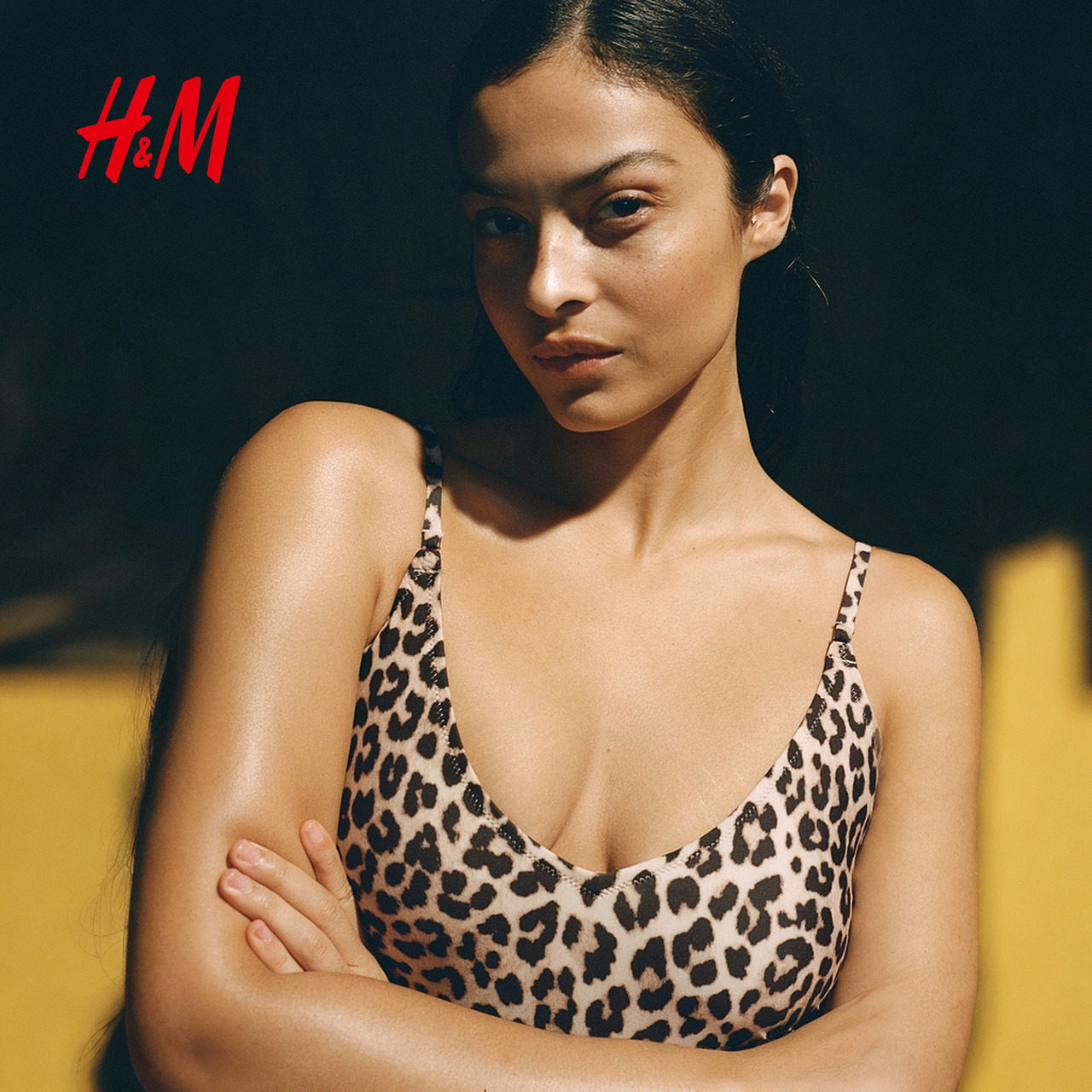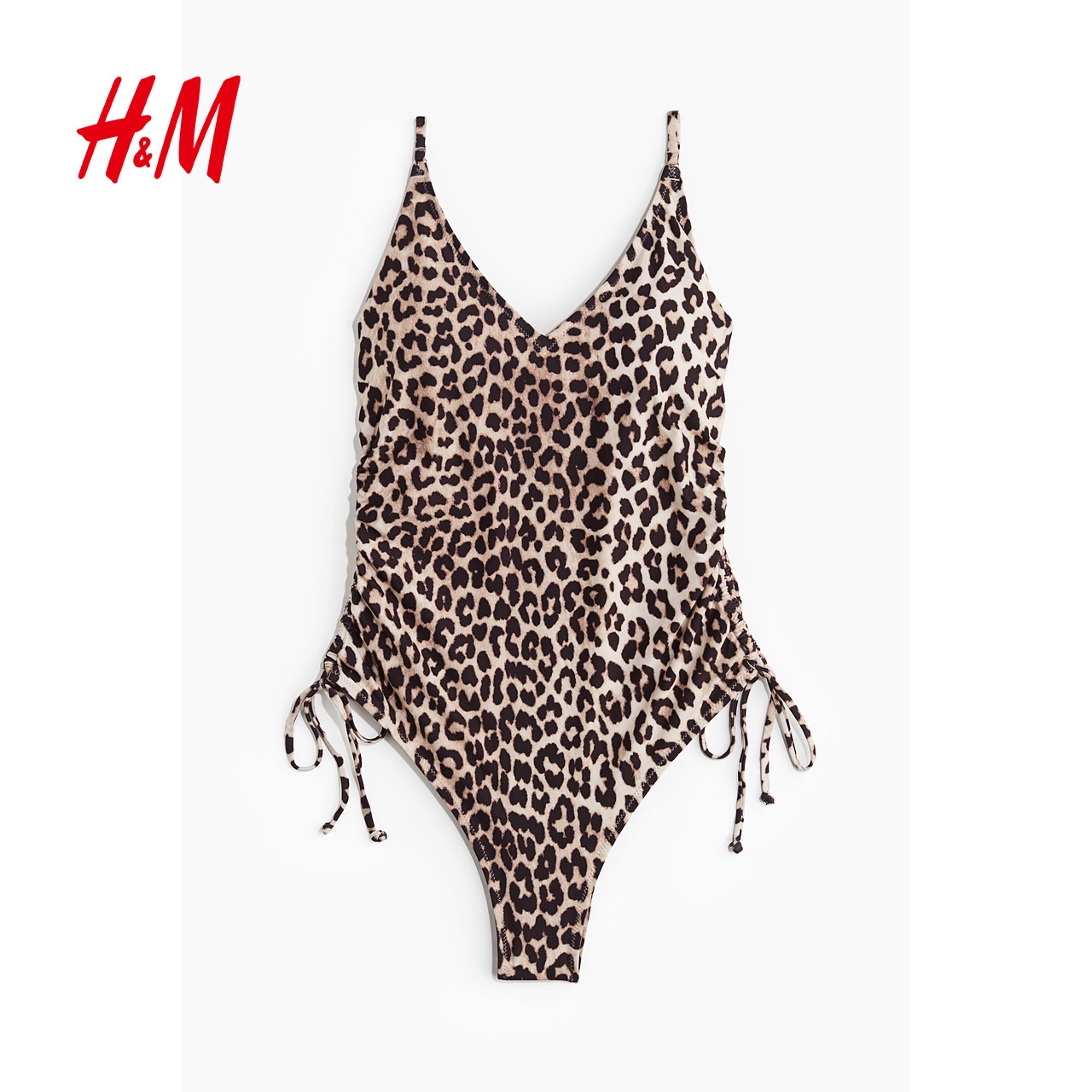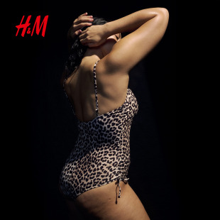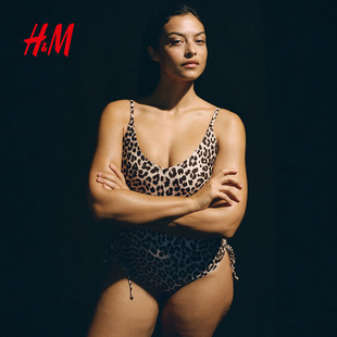 HM女士泳衣2025冬季 V领带衬垫罩杯抽绳细节连体泳衣1259286 新款