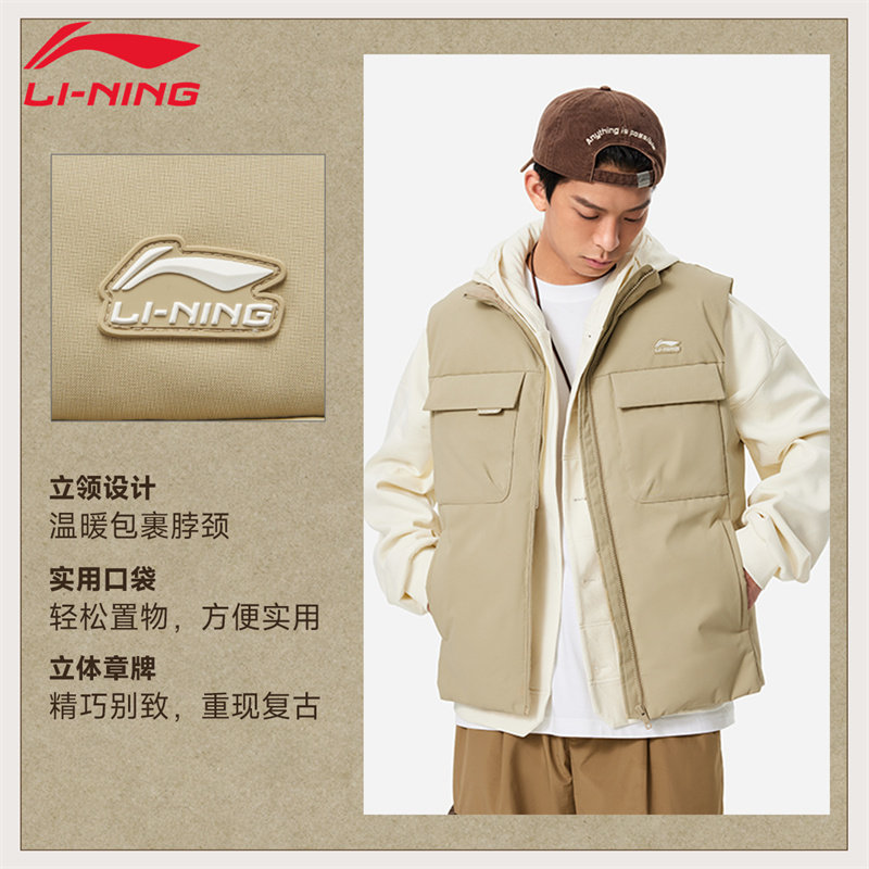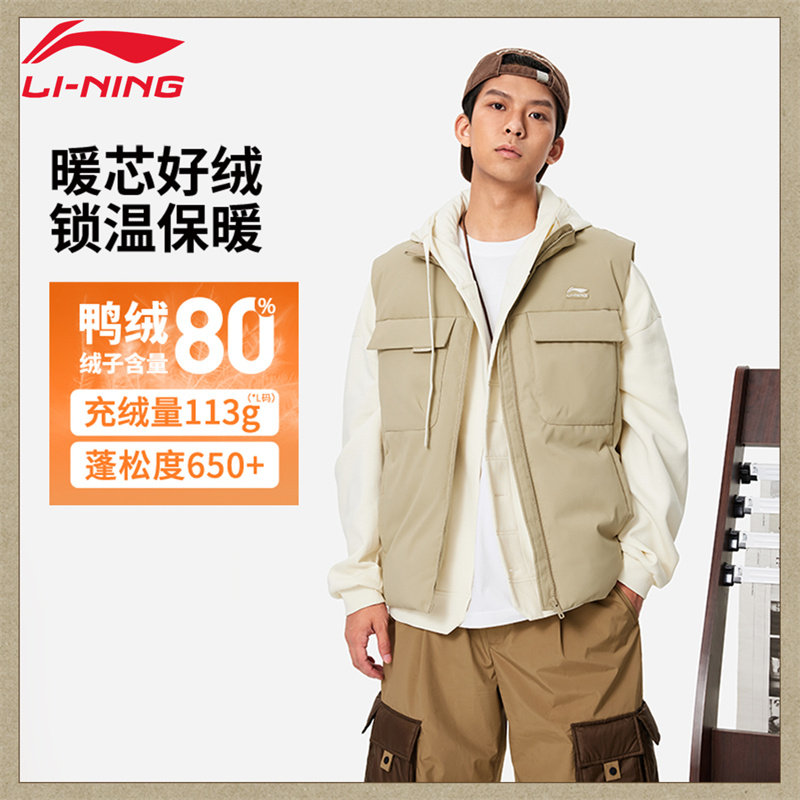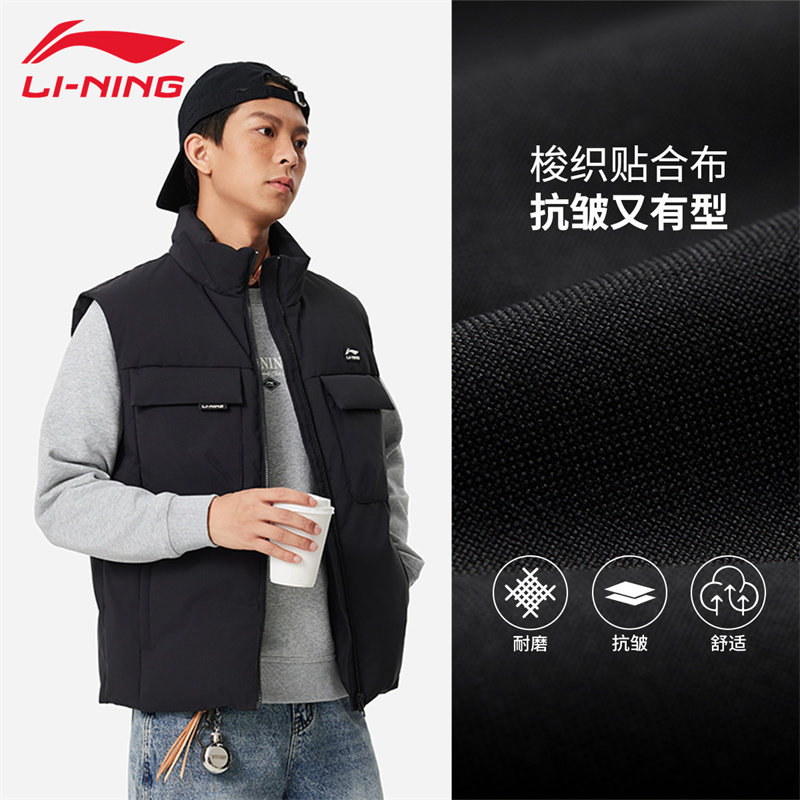 轻薄立领上衣排骨背心鸭绒运动外套 新款 李宁火锅羽绒马甲 男冬季