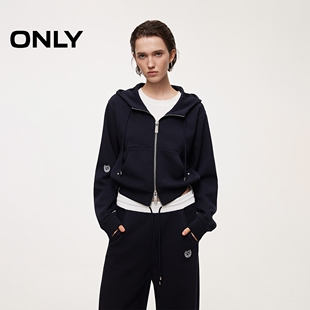 卫衣上衣女 撞色抽绳下摆设计宽松落肩连帽短款 ONLY春季 时尚