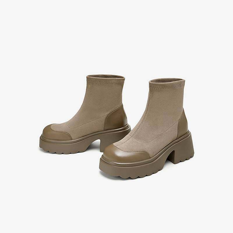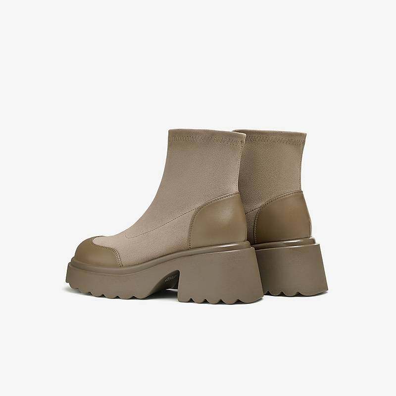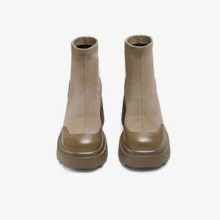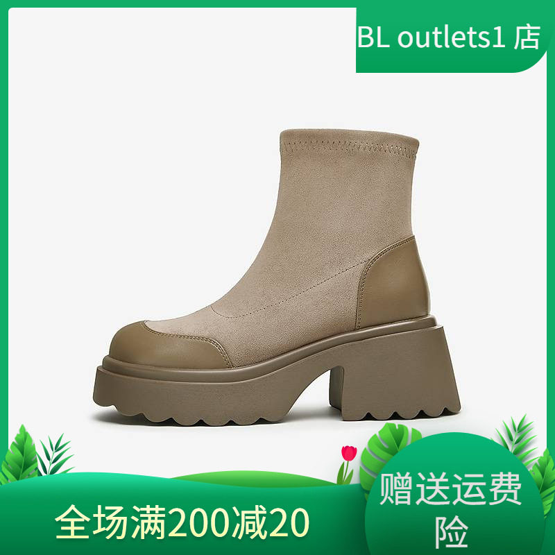 百思图2024冬季 拼色高跟弹力靴女瘦瘦短靴防水台M5202DD4 商场新款