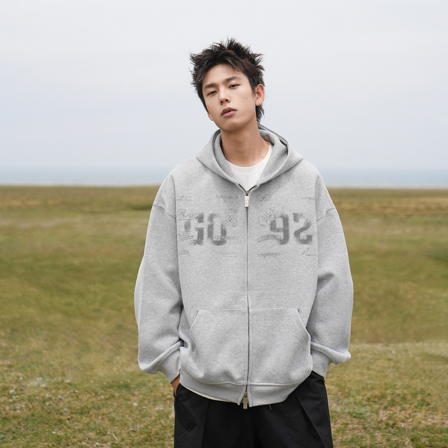 美式 连帽拉链开衫 做旧 GOGOSOON卫衣外套男400g春秋新款 陈奕恒同款