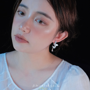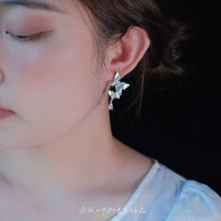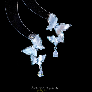 小众耳环耳夹耳饰 超仙复古清冷感银白色蝴蝶流苏法式 冰肌玉骨