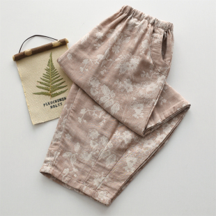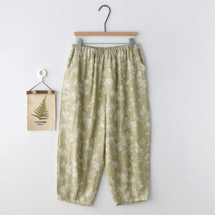 萝卜家居裤 梅花颂提花睡裤 宽松九分裤 纯棉亚麻薄款 可外穿 女春夏季