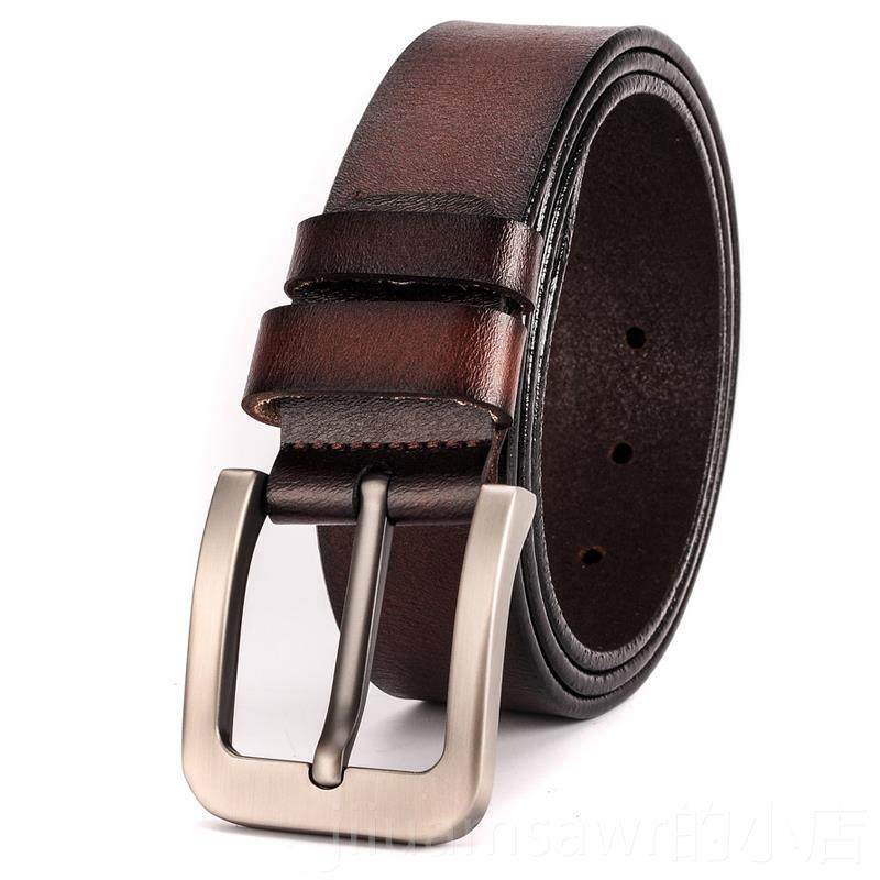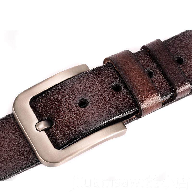 棕色扣针眼牛腰带 带 棕色黄棕色皮青年针扣士 真皮男针扣眼裤 新款