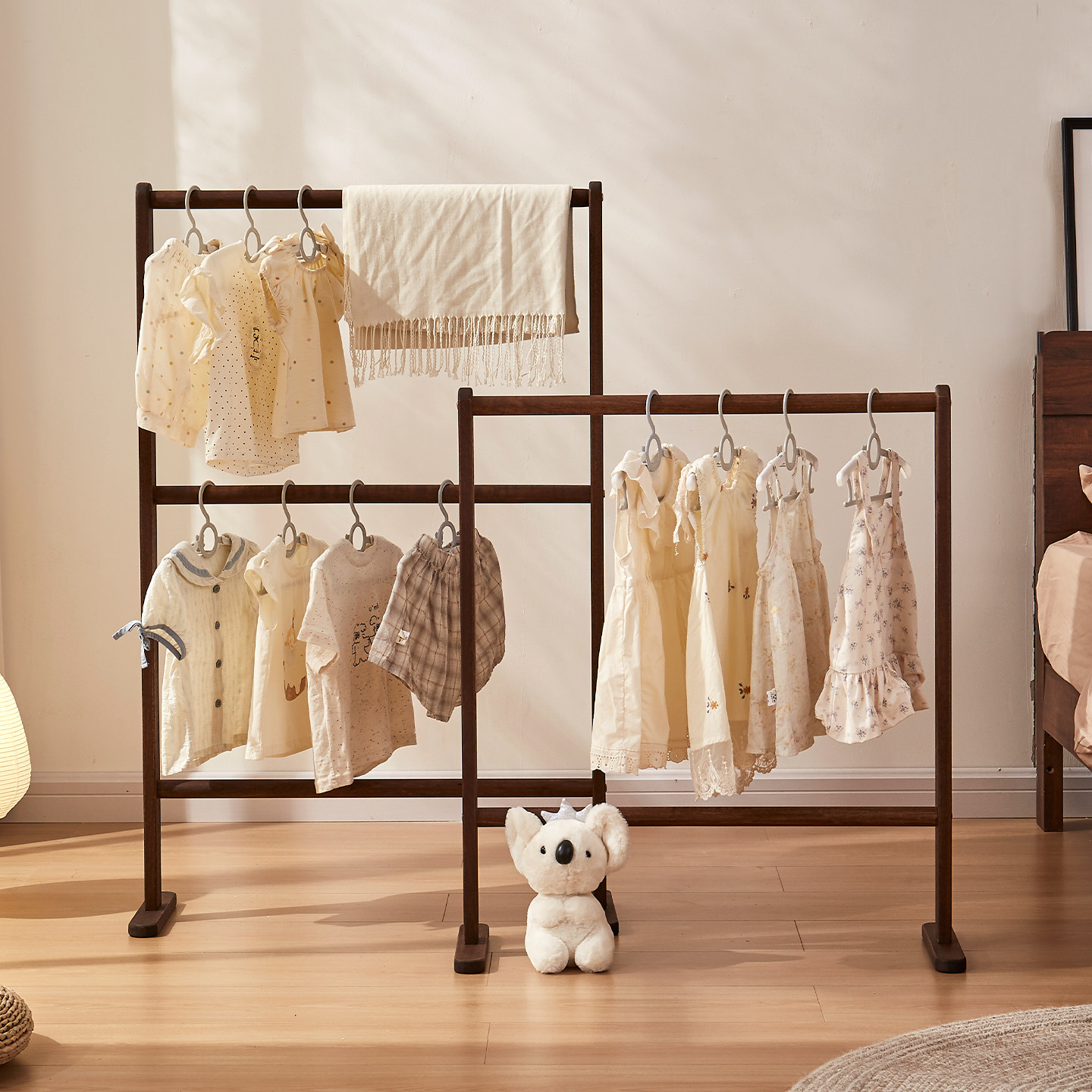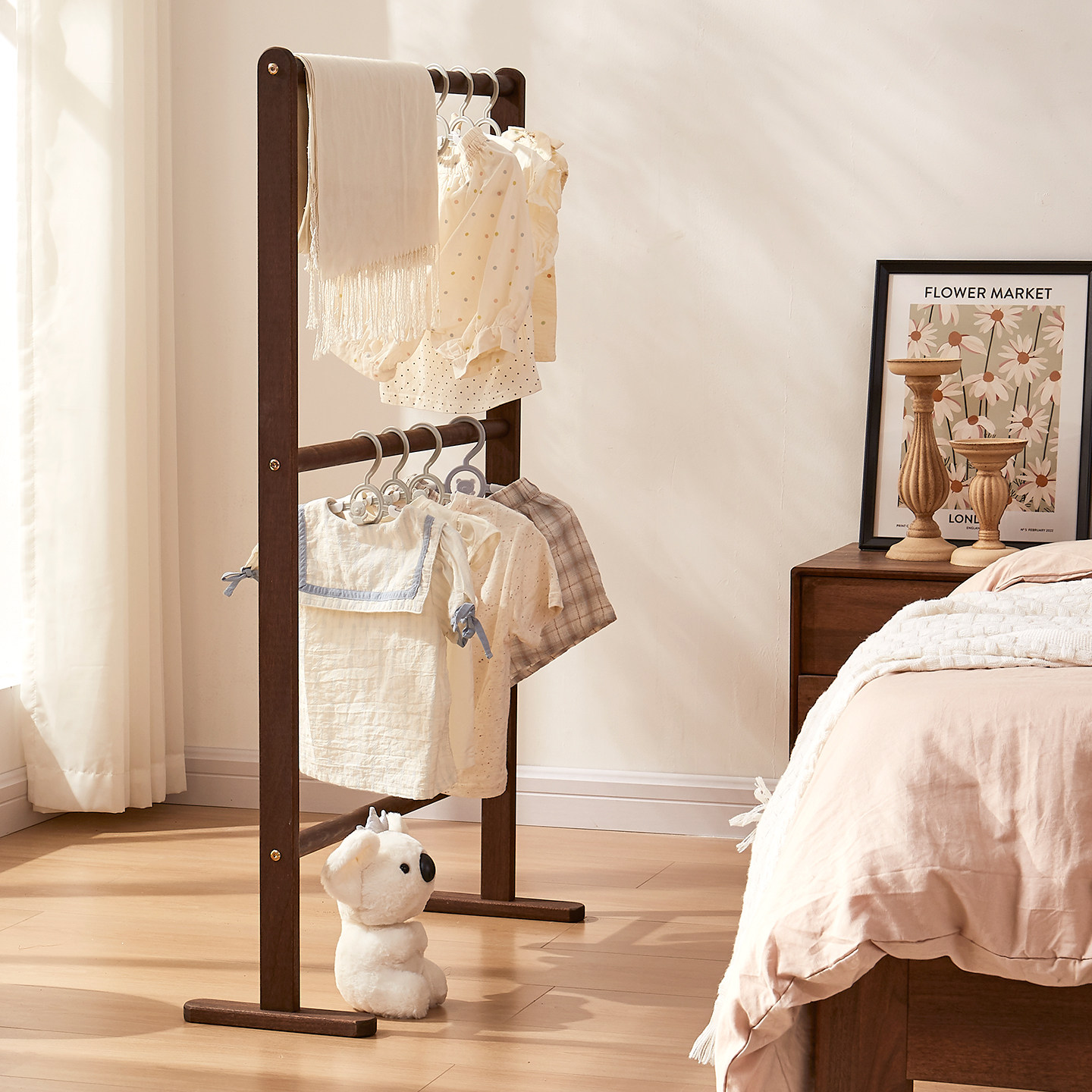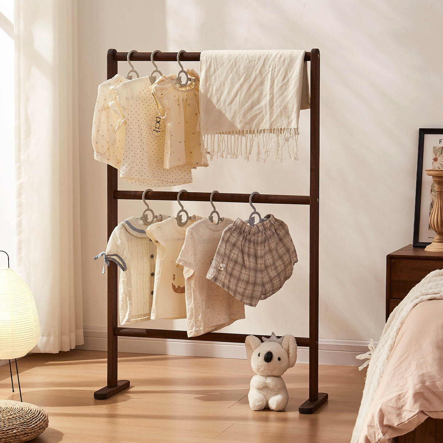 床头衣帽架落地小实木卧室晚上睡觉临时搭衣裤 收纳北欧挂衣架家用