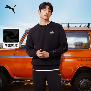 秋季 保暖圆领套头衫 新款 休闲内搭长袖 运动服男装 特步加绒卫衣男士