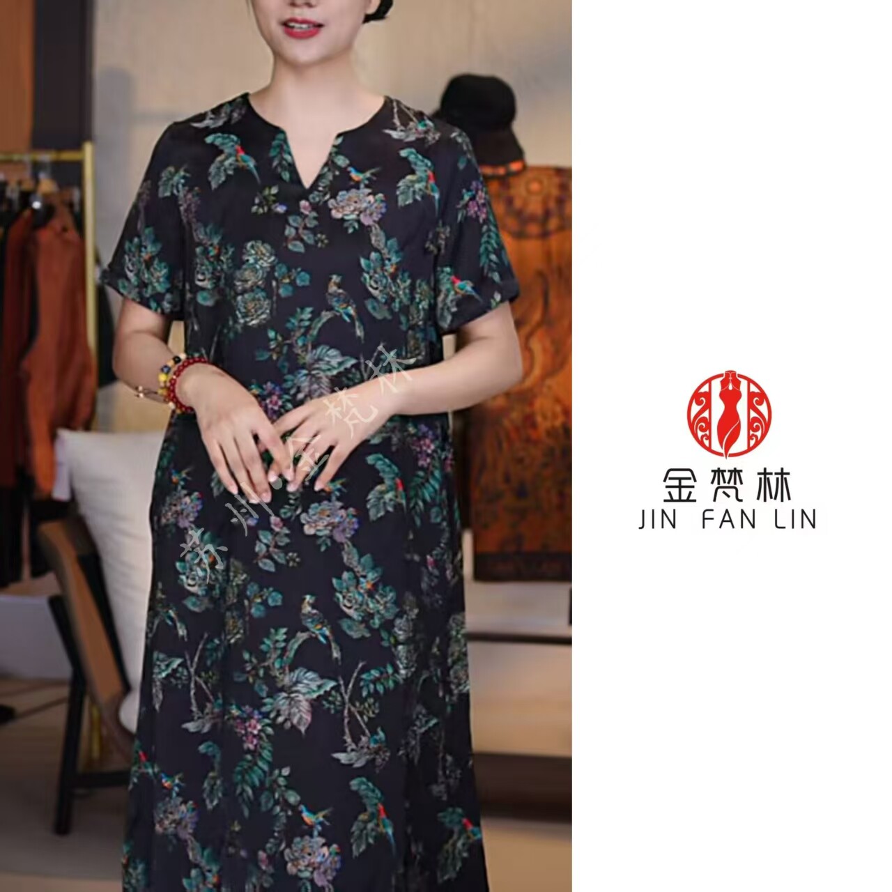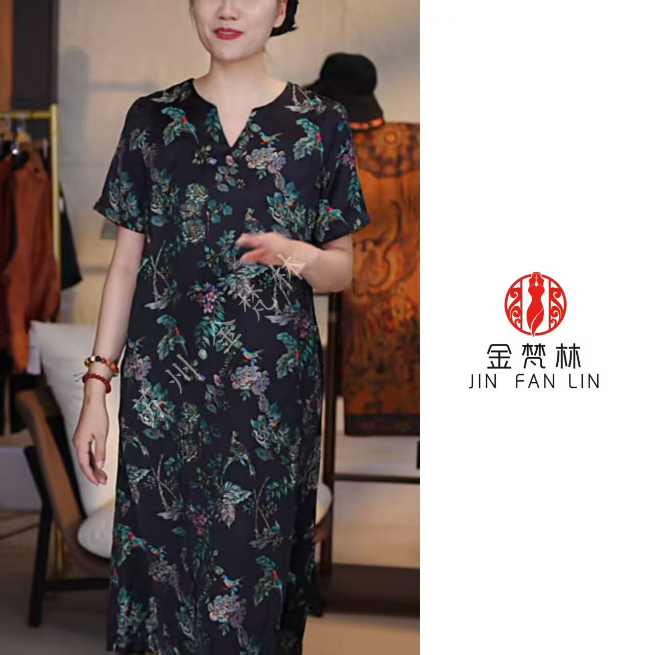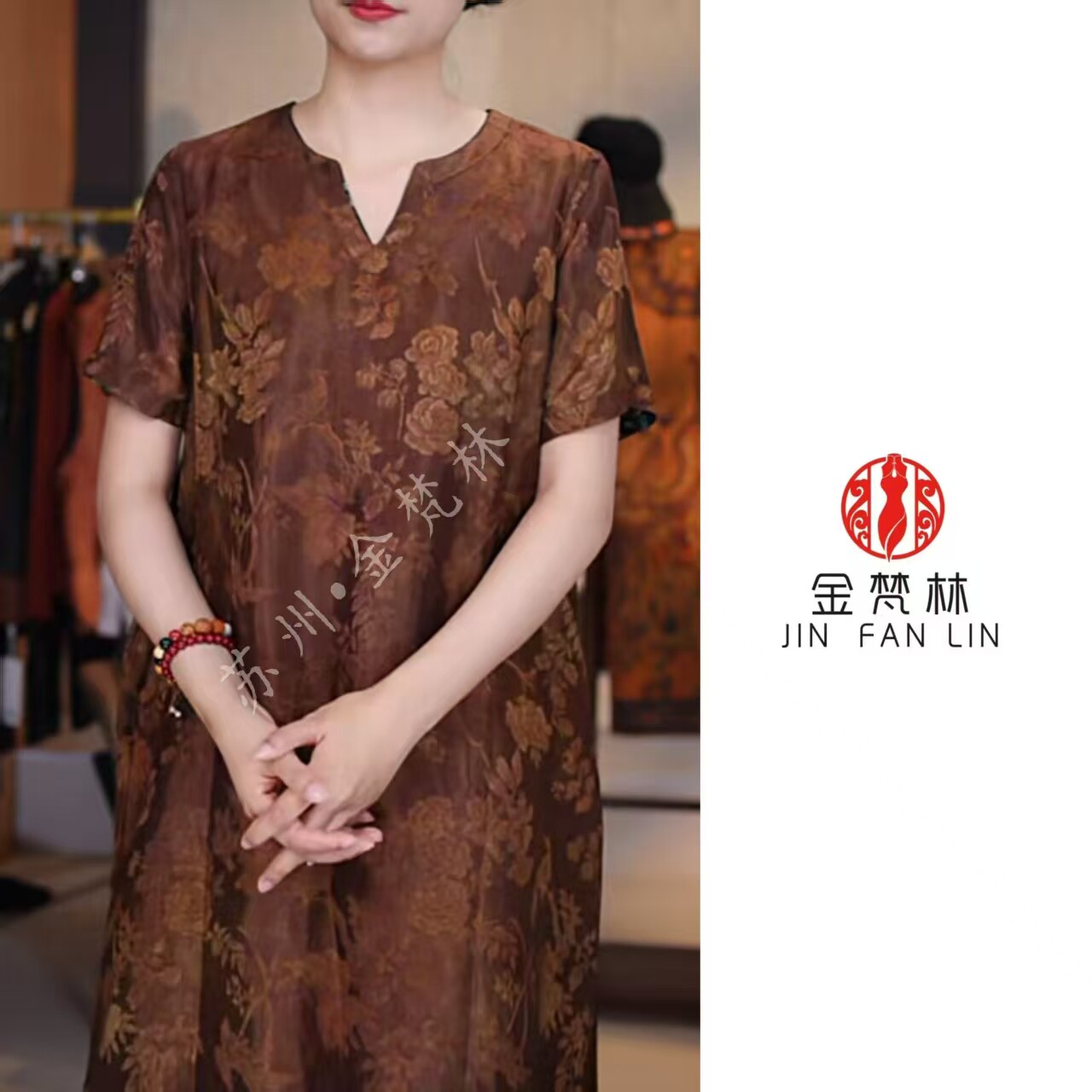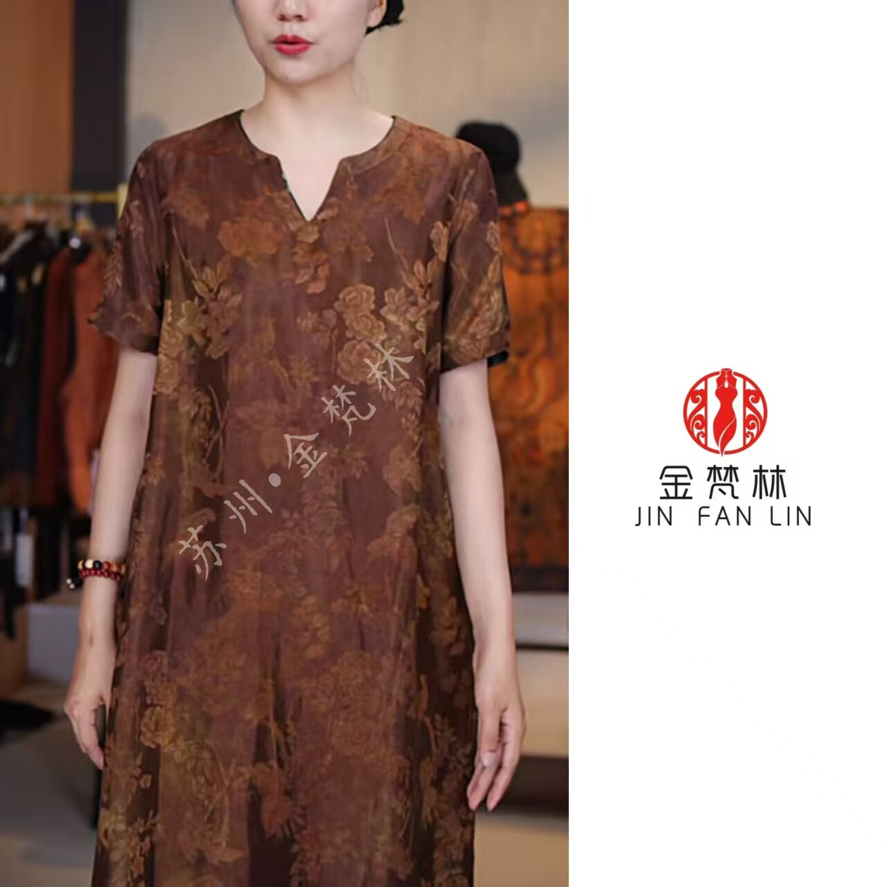 老料V领短袖 双面穿老钱风古法香云纱新中式 连衣裙腰 林栖花谷