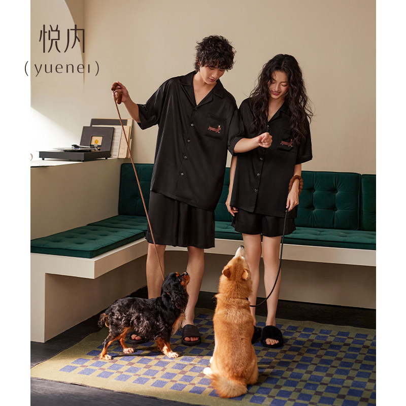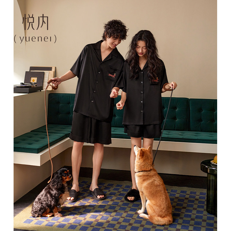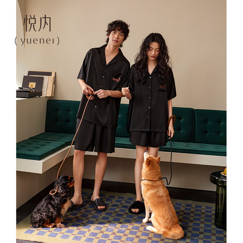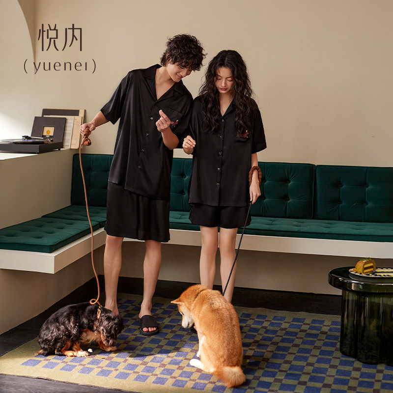 大码 悦内情侣睡衣女款 短裤 冰丝绸短袖 家居服男夏天凉感高级感 夏季