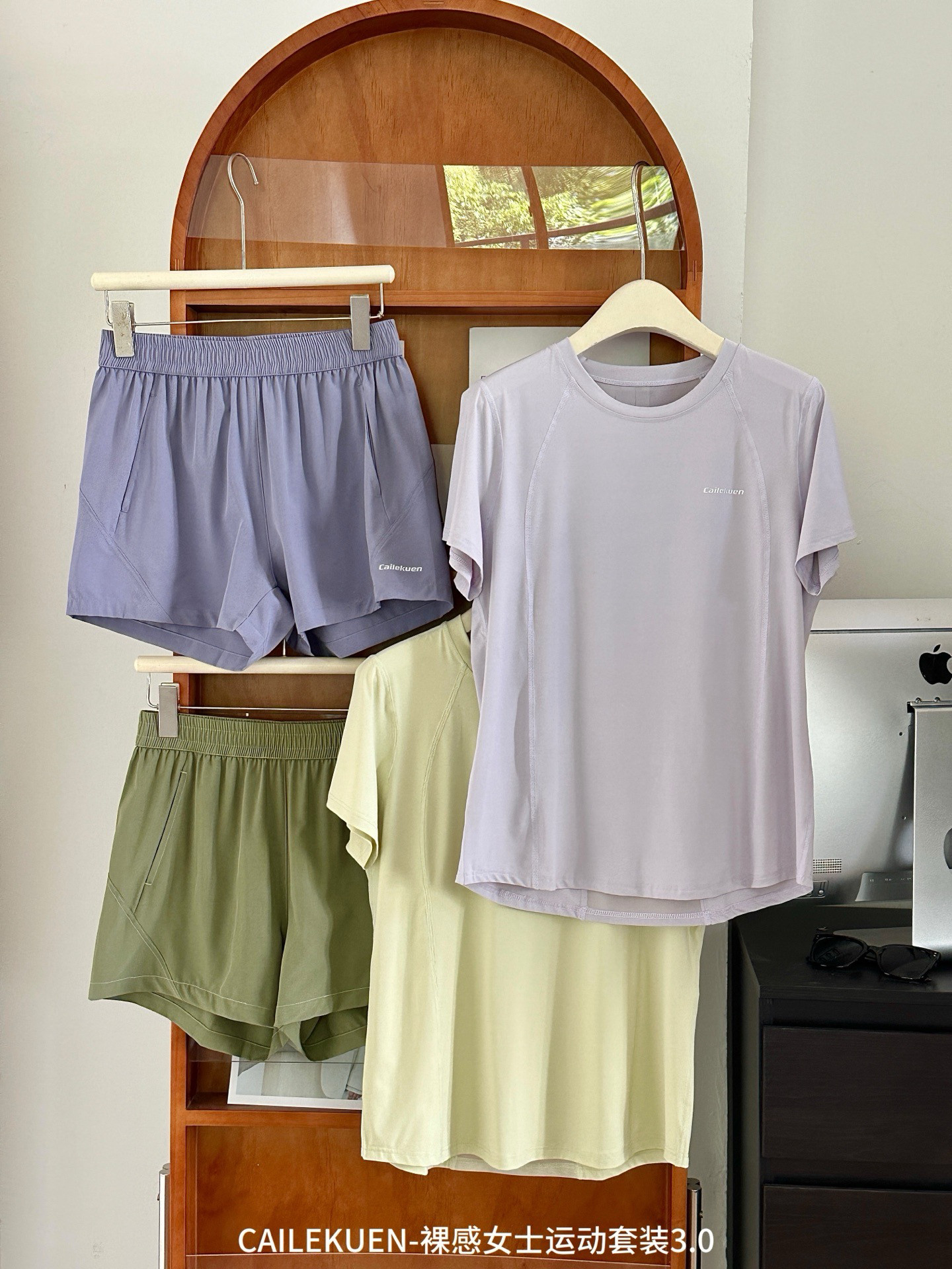 休闲两件套 短裤 Cailekuen裸感女士运动套装 3.0夏冰感透气速干短袖