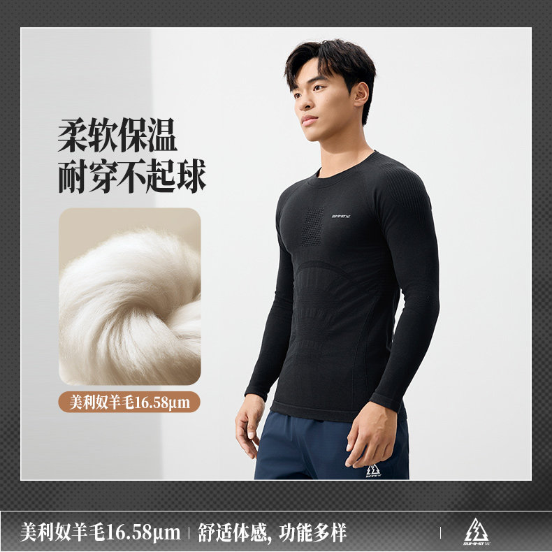 一体织保暖上衣长袖 男士 T恤 新款 361美利奴羊毛紧身衣男2025秋季
