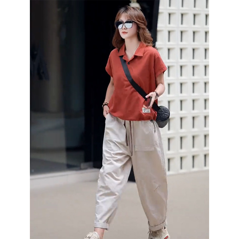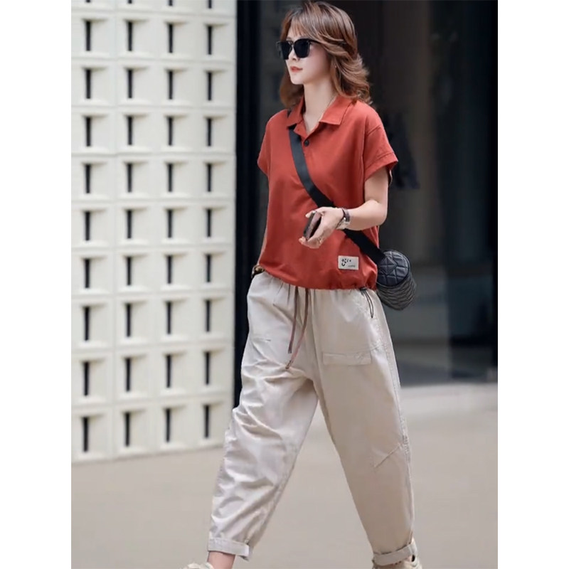 套装 欧货2026夏新款 九分哈伦裤 T恤 百搭宽松两件套 洋气印花短袖