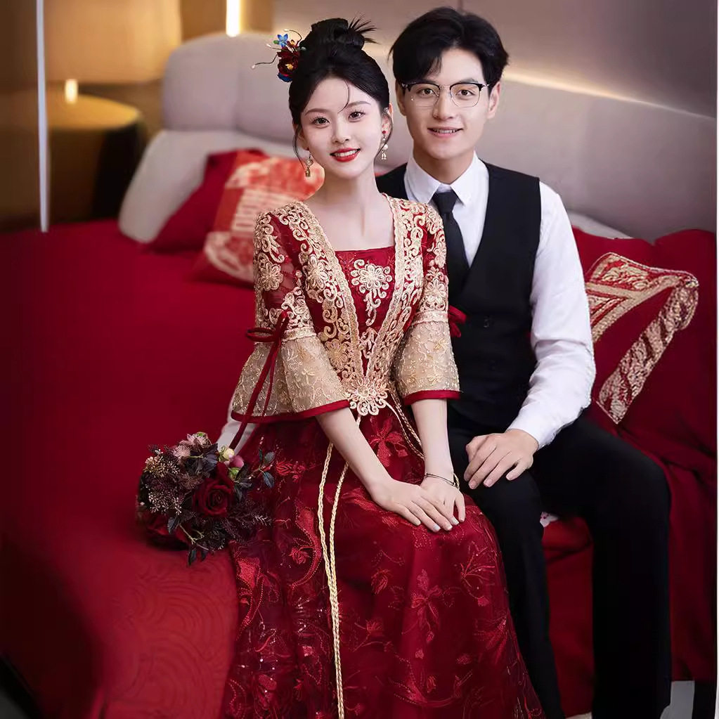 订婚秀禾服 新娘小个子高腰遮肚中式 孕妇敬酒服大码 胖mm2025新款