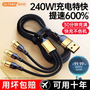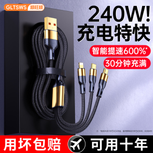 官方240W数据线充电线三合一超级快充安卓适用华为vivo小米oppo苹果typec手机充电器一拖三车载多功能多用